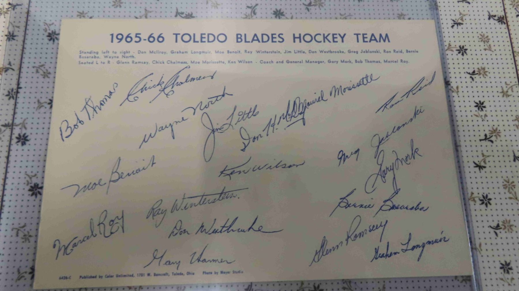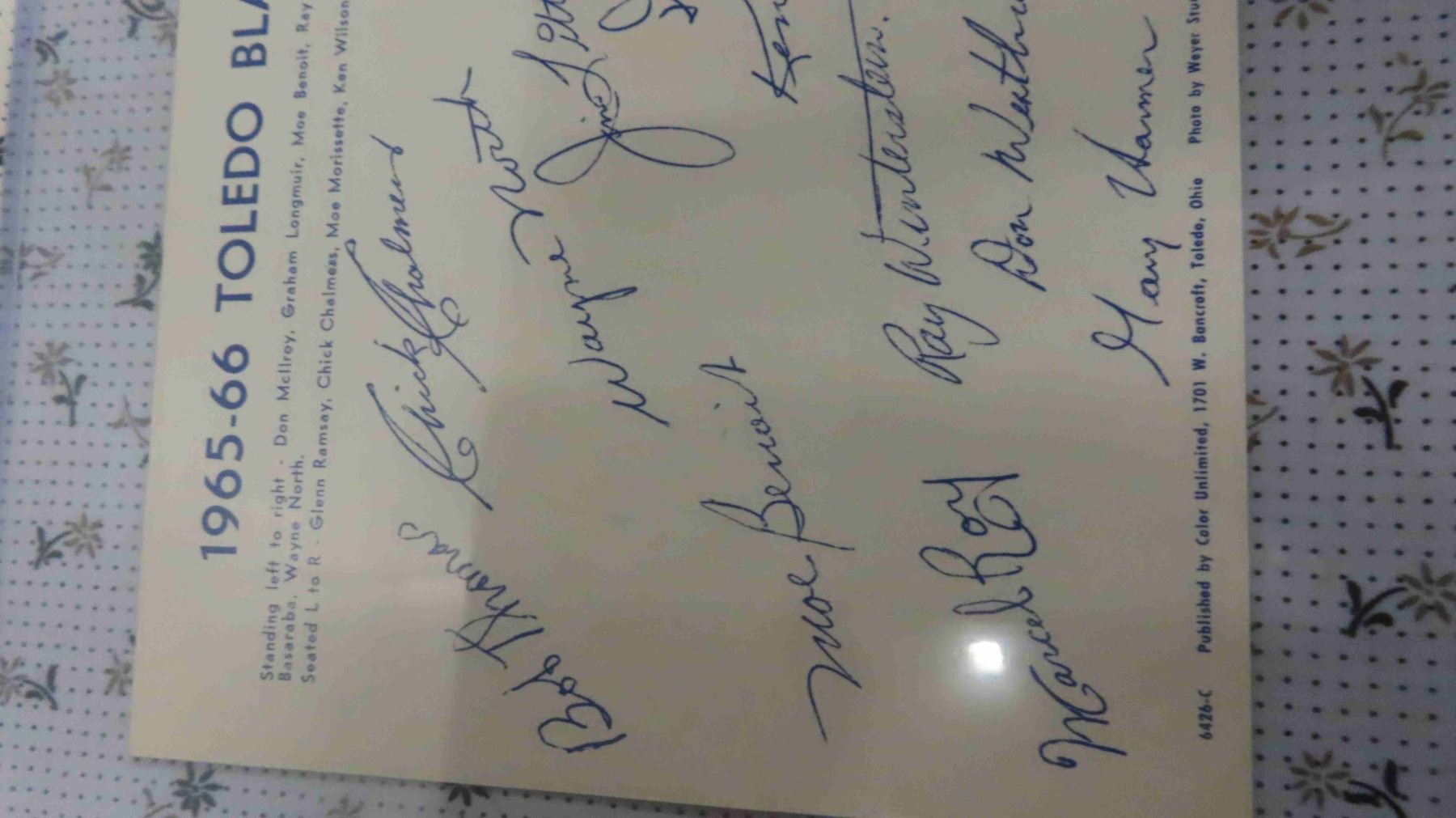1965-66 Toledo Blades Hockey Team Photo with Autographs 6'' x 9''