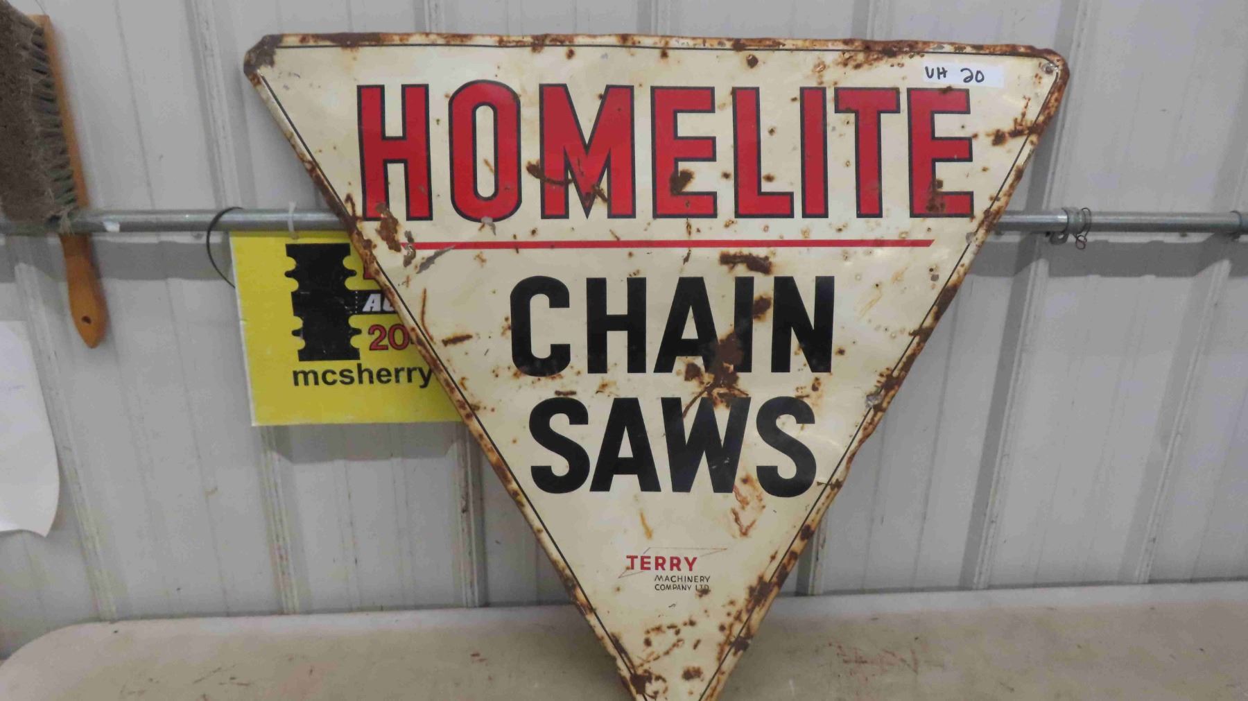 1965 Homelite Chainsaw Sign - Metal 30" x 34"