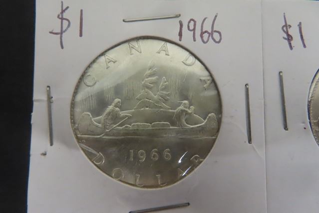1966  Canada $1.00 Silver Coin + 1975 $1.00 Coin