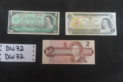 1967 + 1973 $1.00 & 1986 $2.00 Canadian Uncirculated Bills