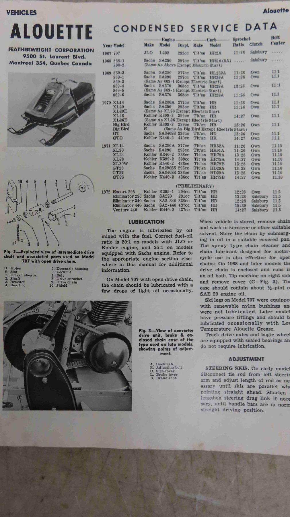 1968-69 Bombadier Manual, Snowmobile Service Manual 5th Edition, Bombadier Spare