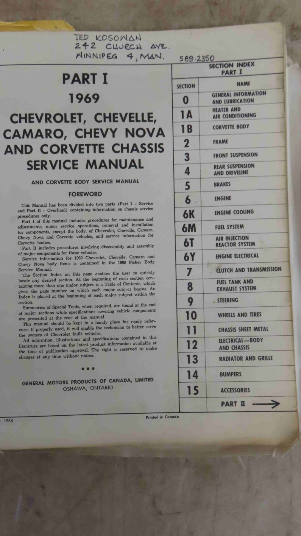 1969 GM Shop Manual Camero Nova Corvette