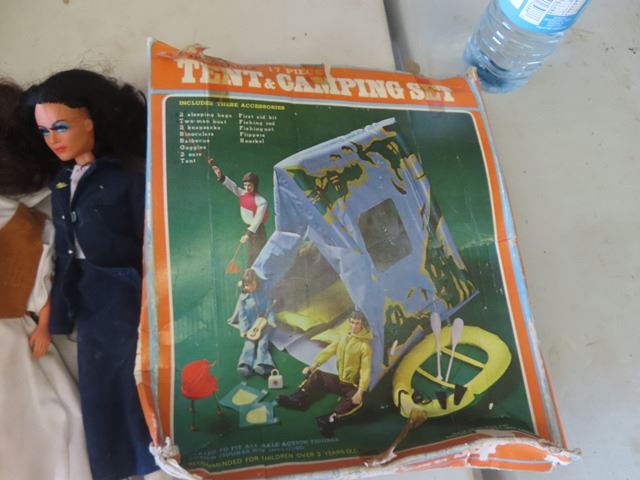 1970's Figurine Dolls, Clothes Locker, Tent & Camping Set 17 pc