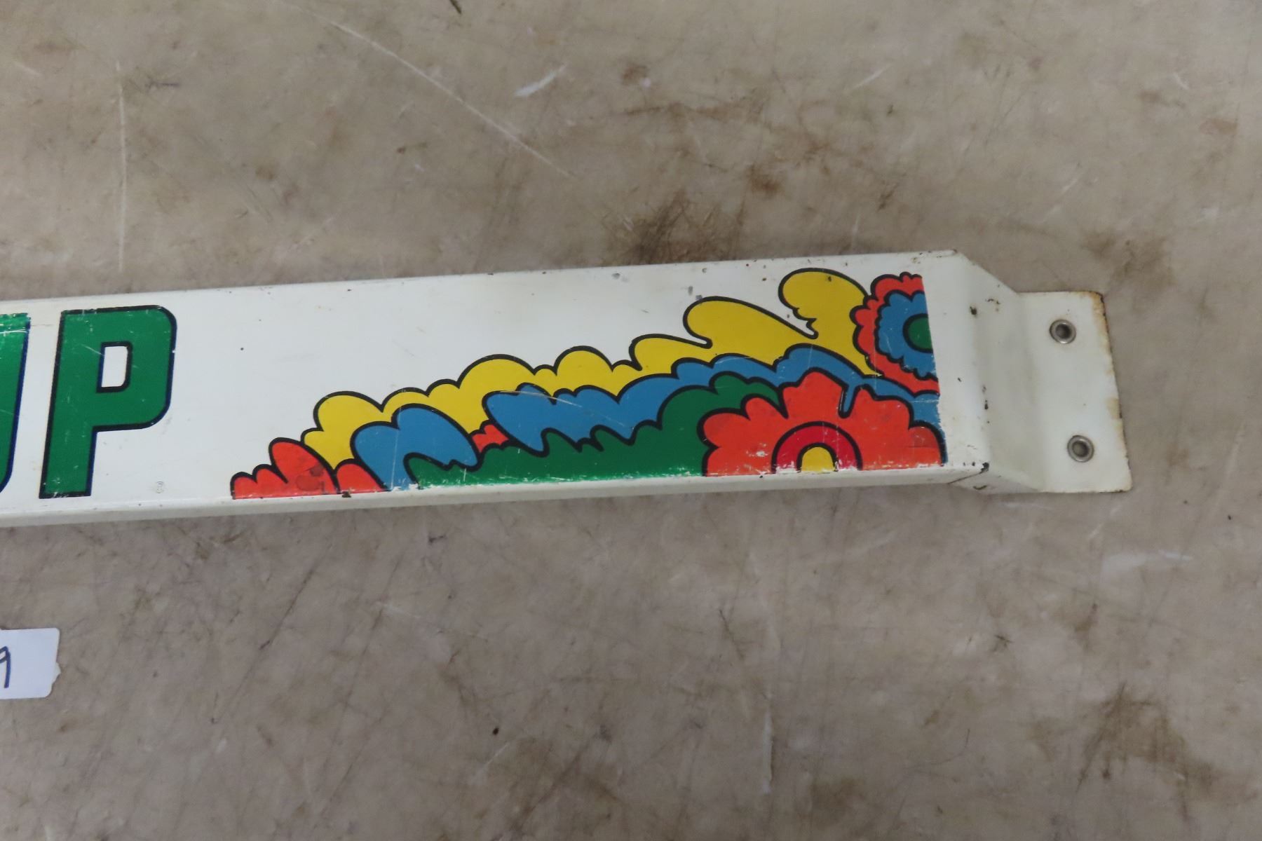 1970s 7up Porcelain Door Bar 3'' x 31'' Peter Maxx.