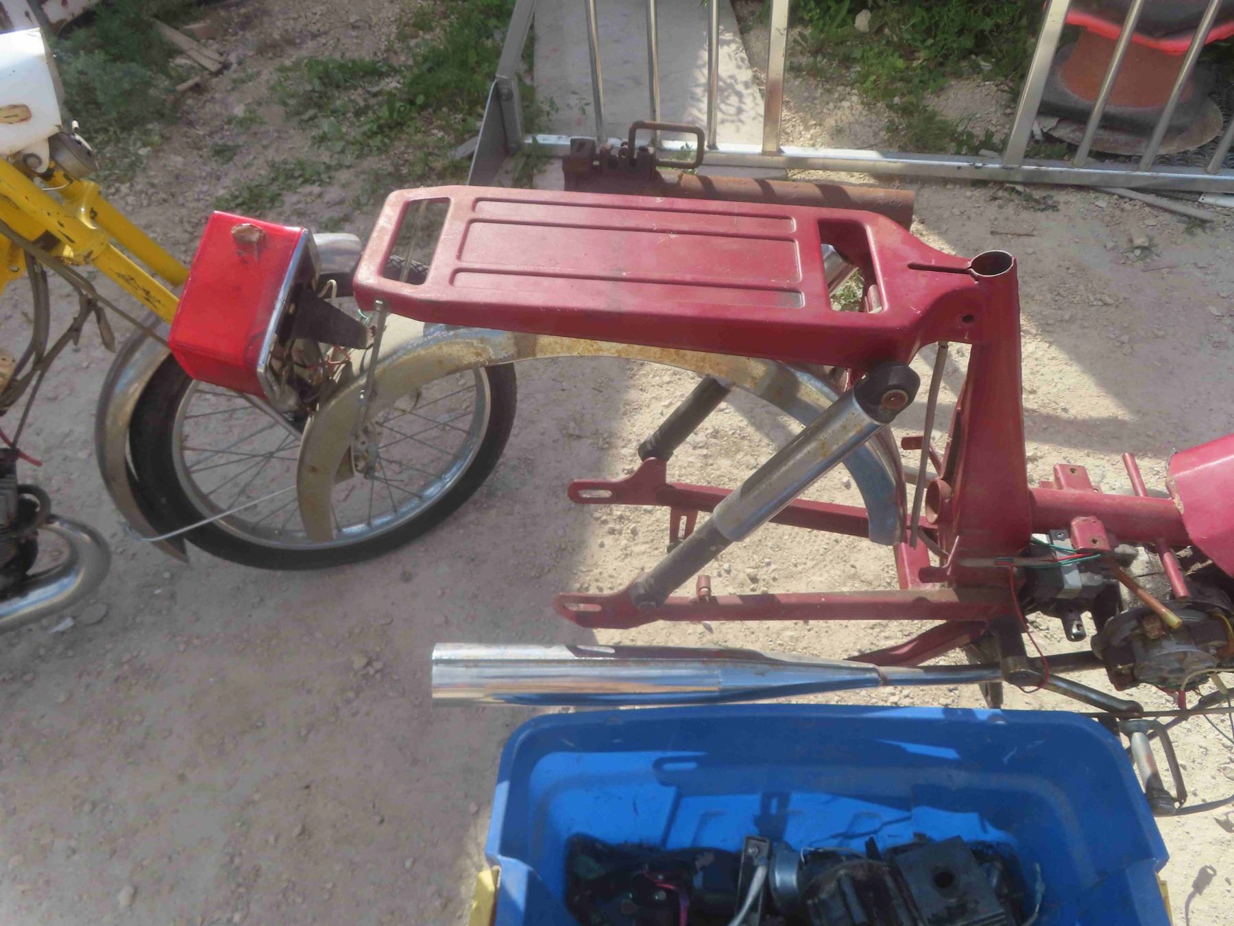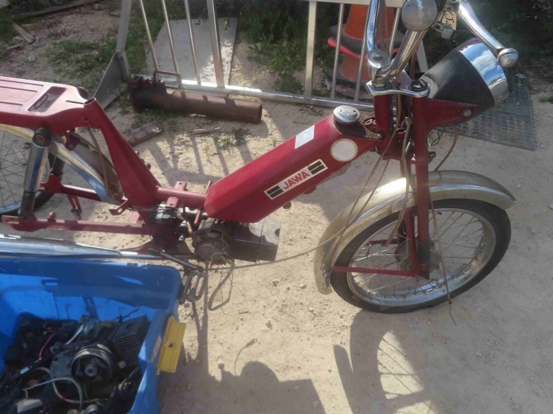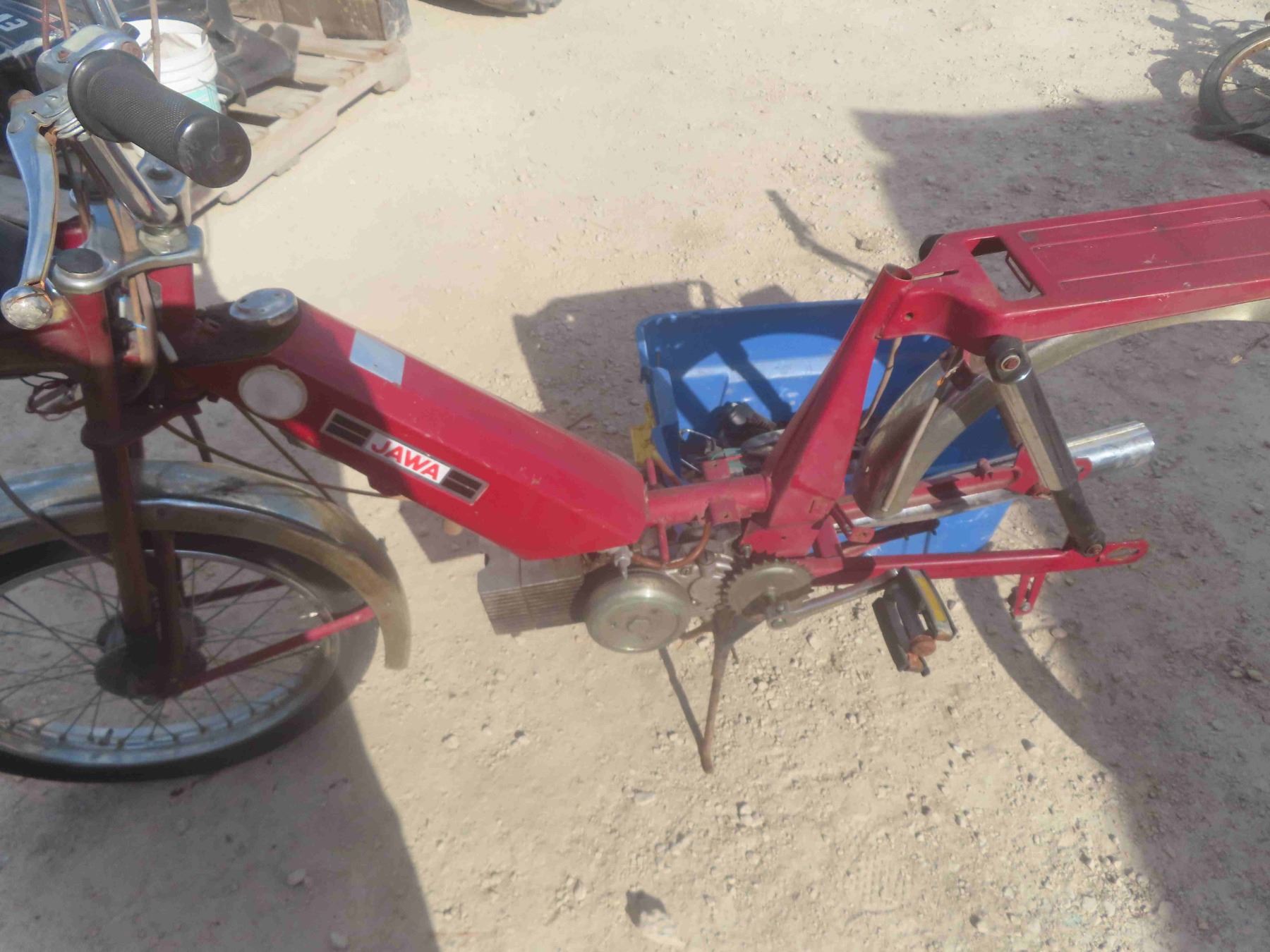 1970s Moped Made by Jawa - Not Running but Motor Seized , Missing Wheel - Comes with Box of Spare Parts