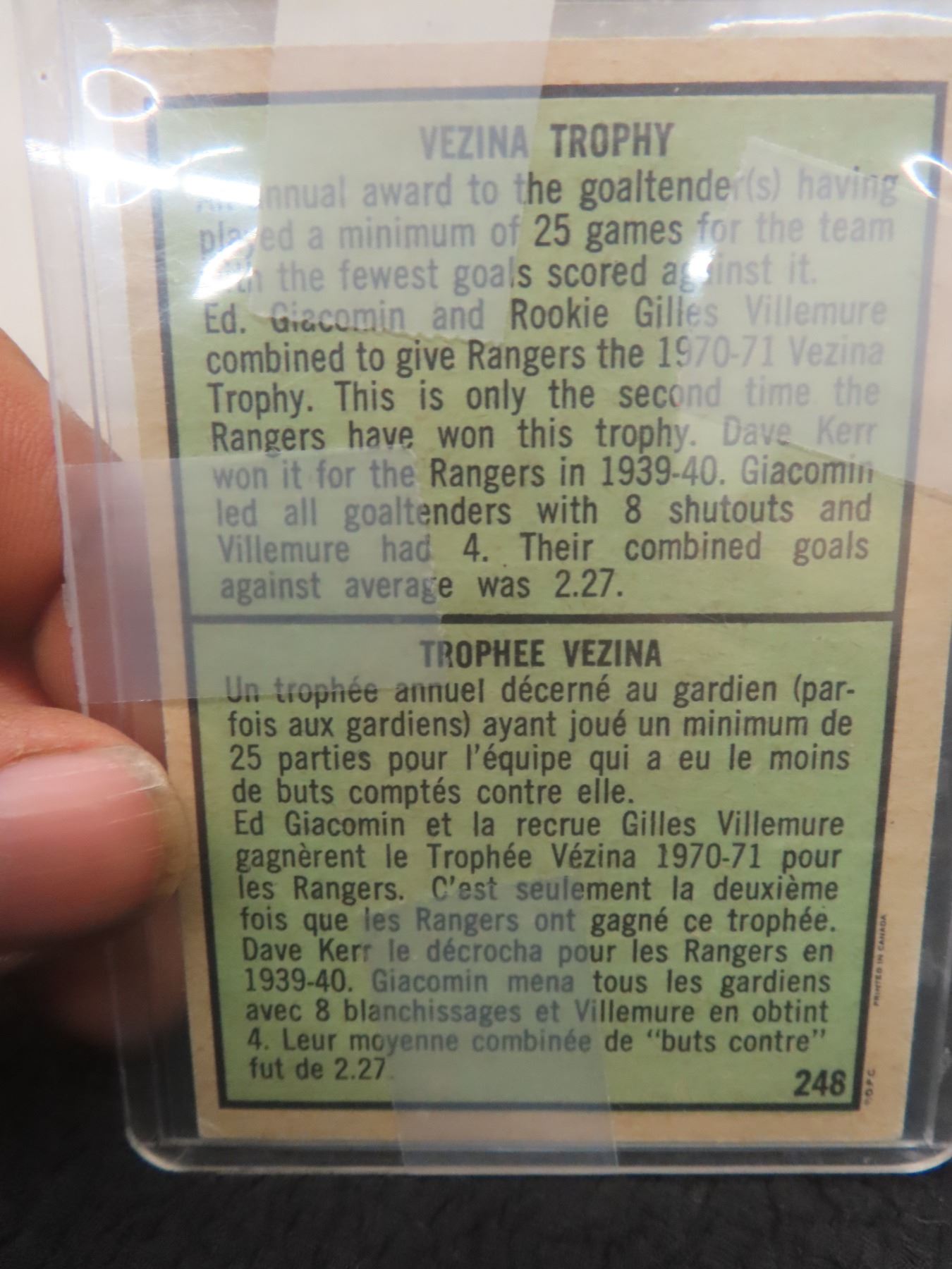 1971-72 Vezina Trophy Winners Card