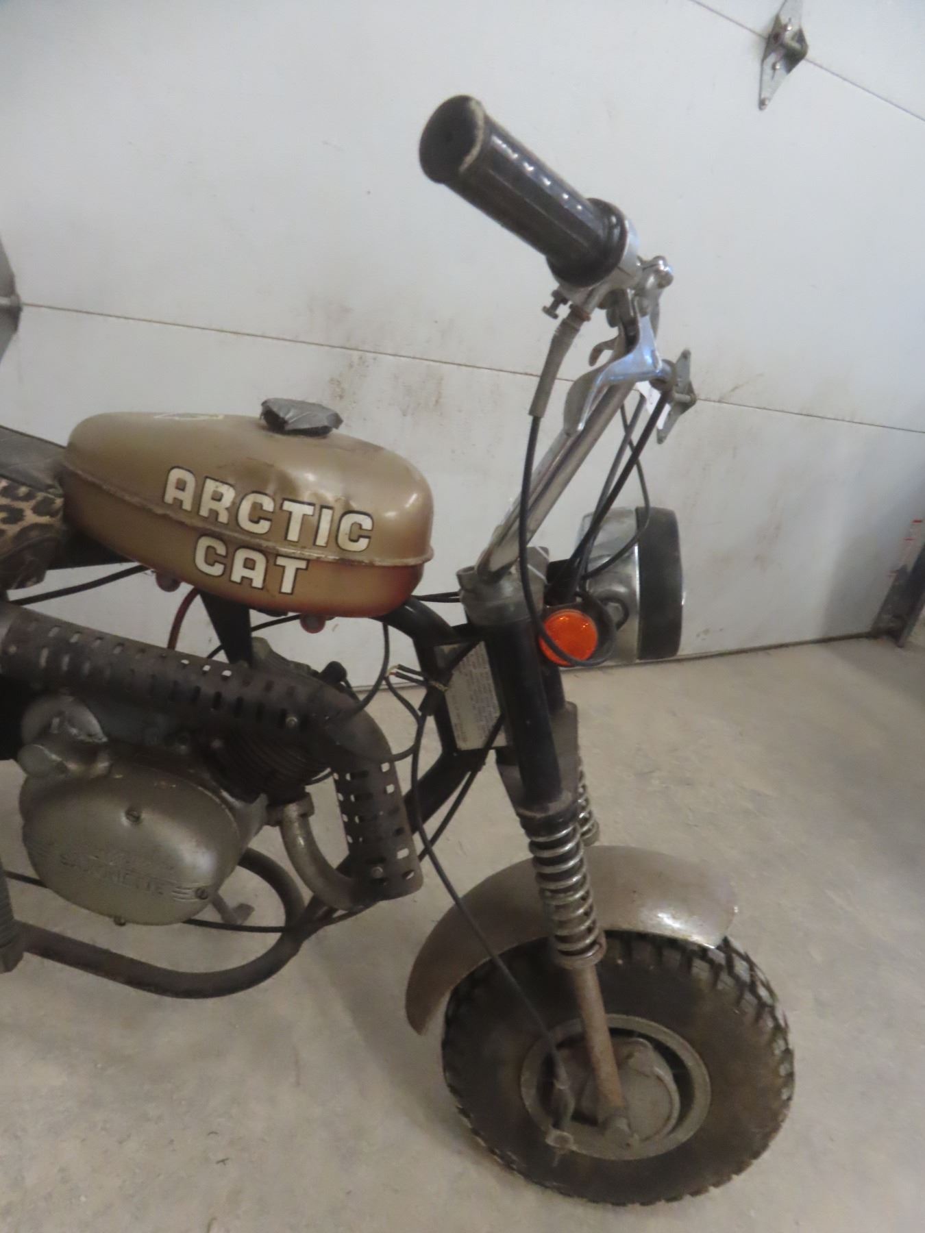 1971 Arctic Cat Prowler Mini Bike Model #2325-001 with Cheetah Print Seat (SN #152393) – Handlebar Bracket Broken – Not Running
