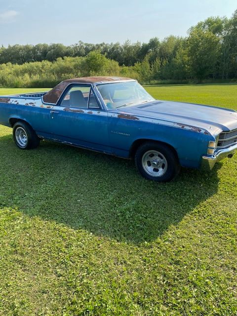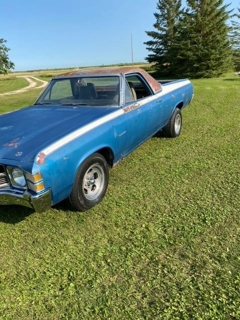 **OFFSITE** 1971 Chevy El Camino 350 Motor, Bored 30 Over, Street and Strip Cam, Aluminum Intake, New Valve Cover Gaskets, New Air Filter, New Plugs and Wires, New 690 Holly Street Eliminator Carb, New Gas Tank, New Holly Fuel Pump, Motor Was Built by JM Racing in the 1980s , Car was Rustproofed Underneath & in The Doors 1980s , Car Has Been in Storage from 1990-2018 : Contact Myles for Viewing and Pickup Arrangements 204-918-3317 *HAS TOD