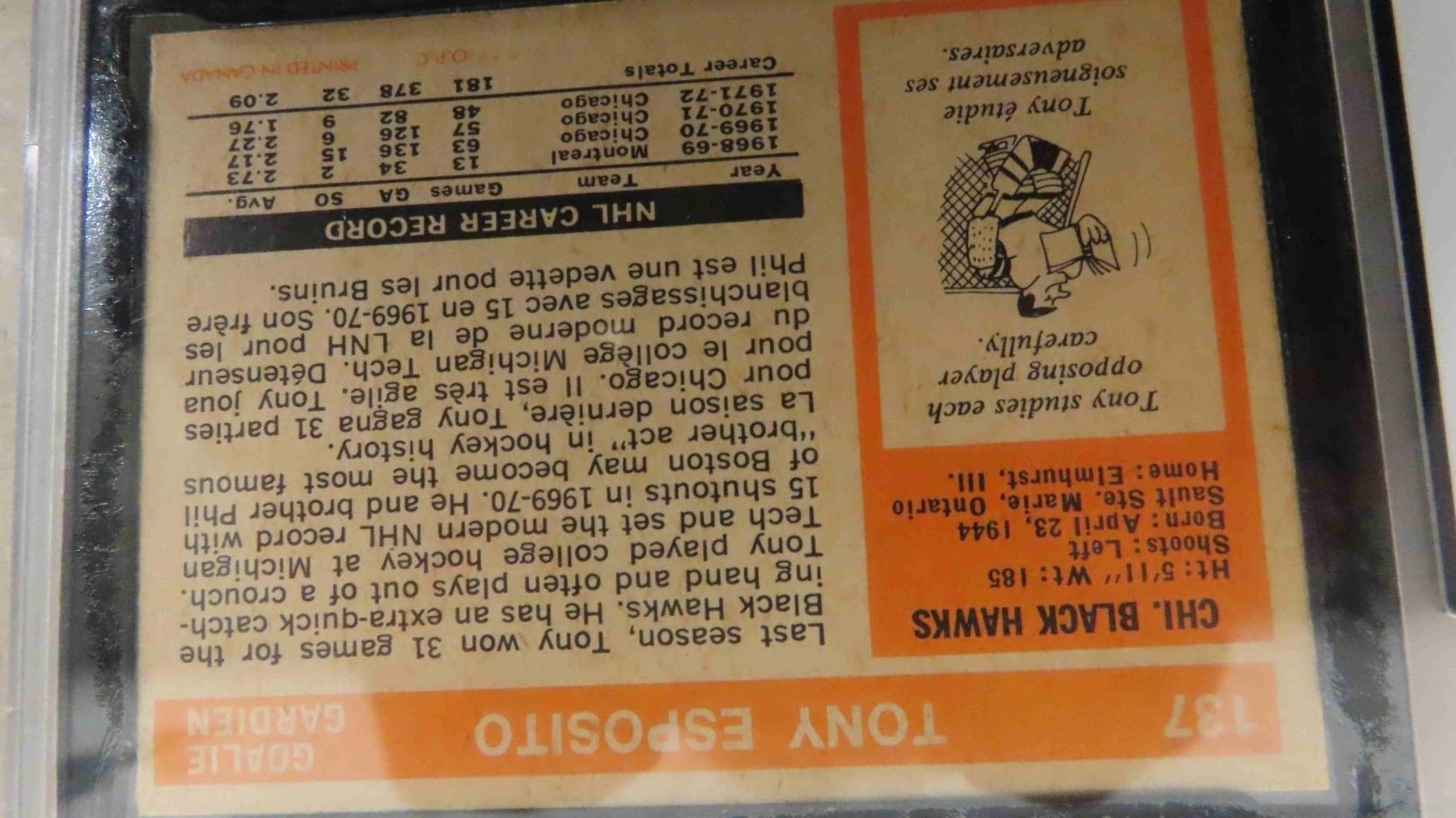 1972/73 OPC Tony Esposito Chicago Black Hawks Graded Card