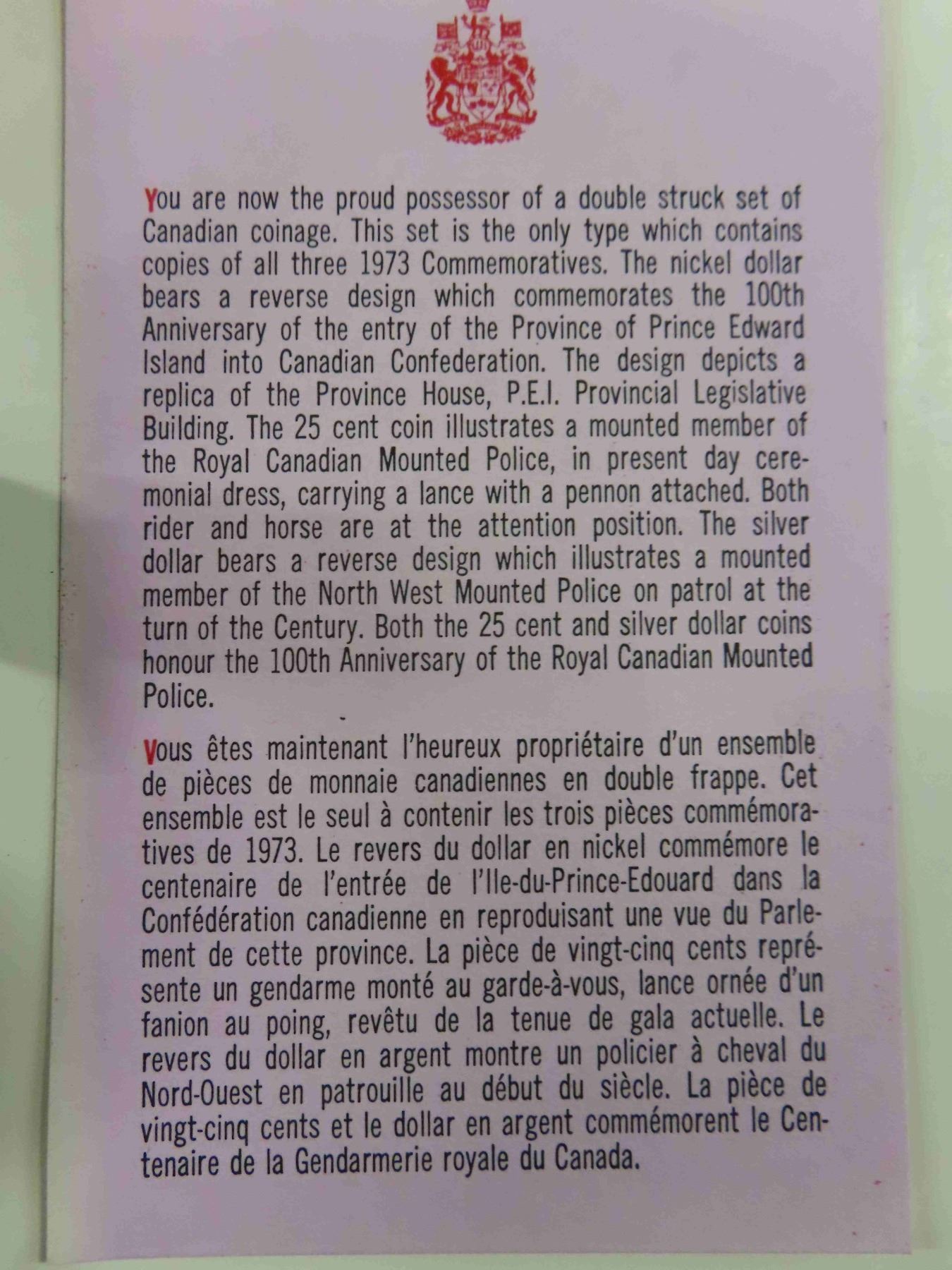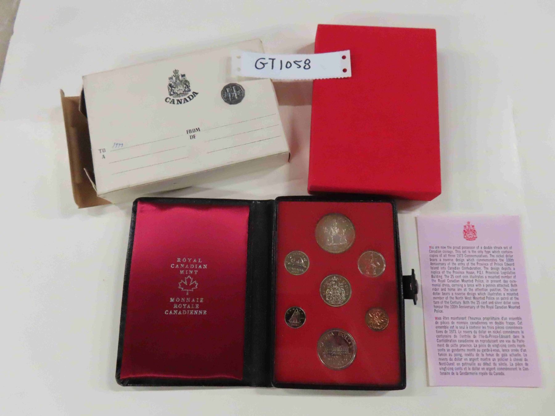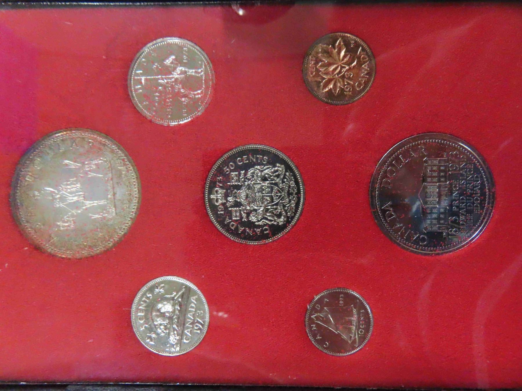 1973 Canada Double Struck Uncirculated Coin Set with Both Silver and Nickel $1 Coins in Leather Display with Box - Royal Canadian Mint