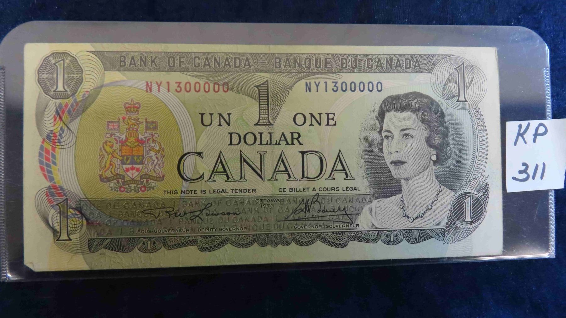 1973 Canada Milestone $1 Bill Serial Number 1300000