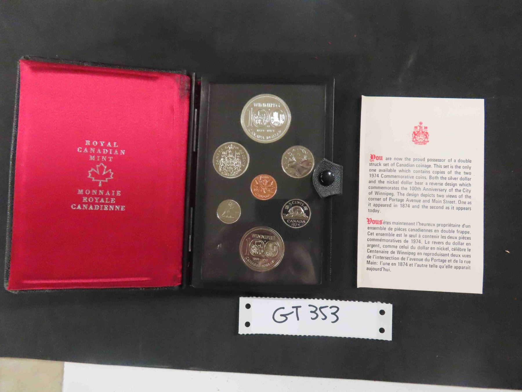 1974 Canada Uncirculated Double Stack Coin Set in Leather Case with Extra Silver Dollar Coin Royal Canadian Mint