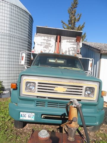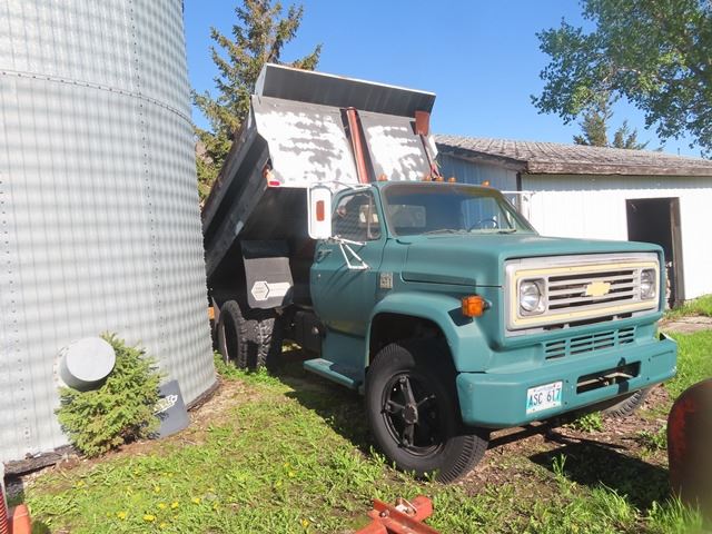 1975 Chevy Model C-60 366 Gas 5 Speed x 2 98817 Miles with 10.5 ' Gravel Box & Telescoping Hoist - WITH TOD - RUNS ROUGH FROM SITTING - COULD USE CARB CLEANING