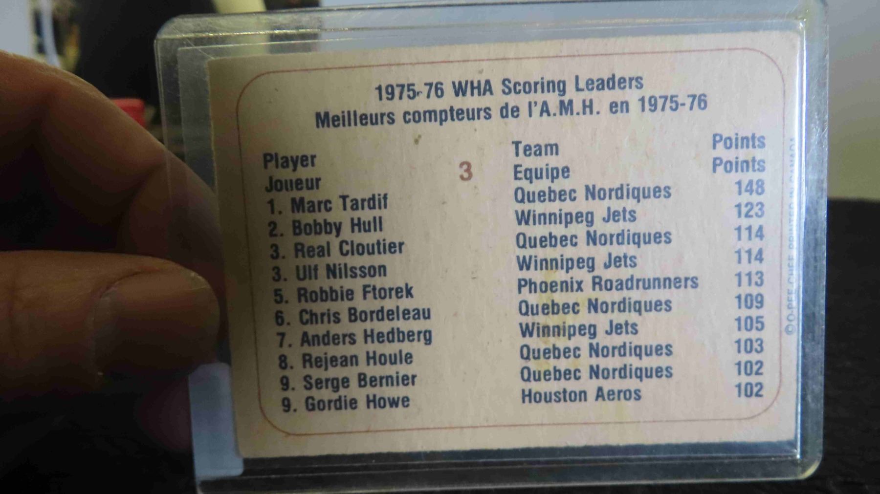 1976/77 O.P.C. WHA Scoring Leaders Hull, Nilsson, Tardif, Cloutier