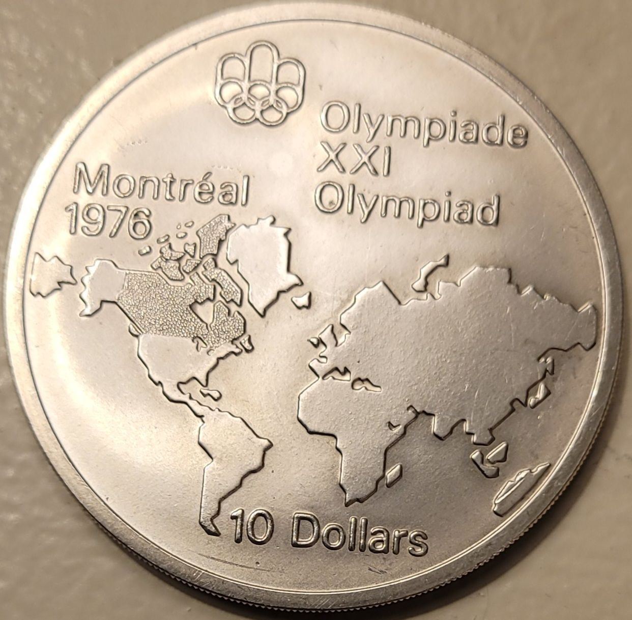 1976 Montreal Olympics $10.00 Silver "Map of the World" Specimen coin boxed. Low mintage