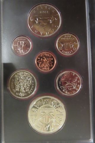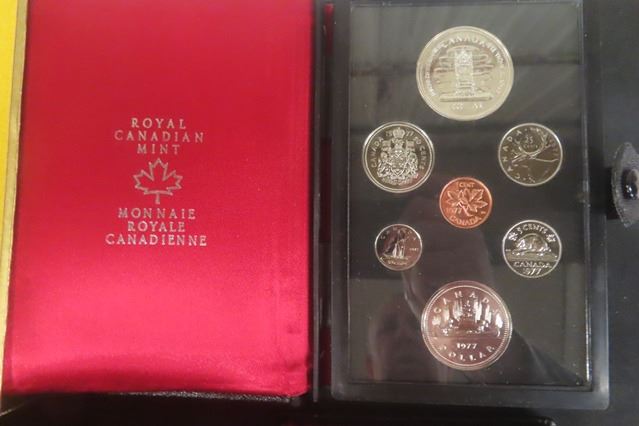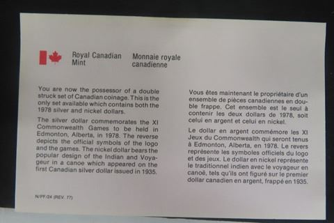 1977 + 1978 Royal Canada Mint Uncirculated Coin Set - Double Struck, with Silver Dollar Leather Display Set