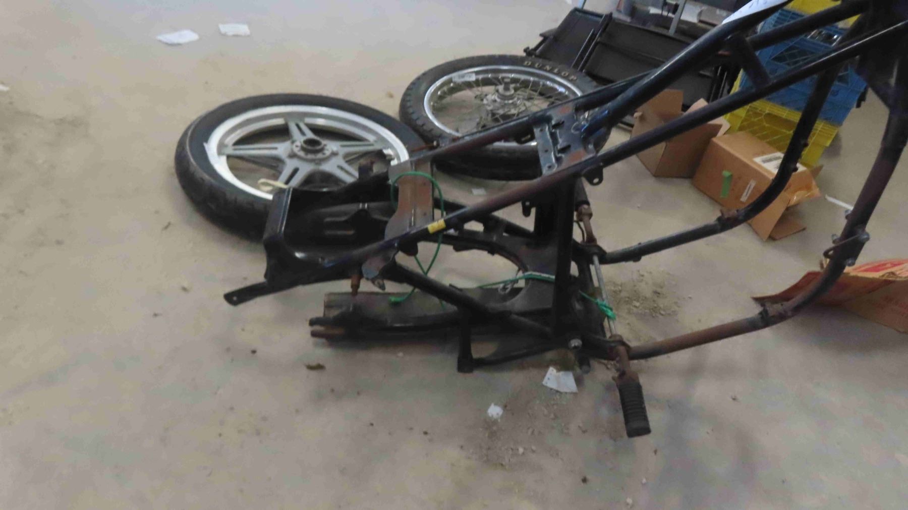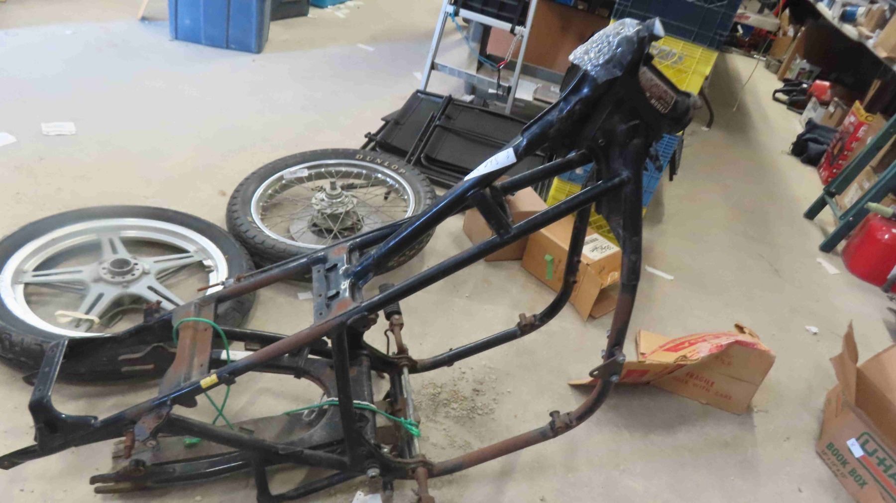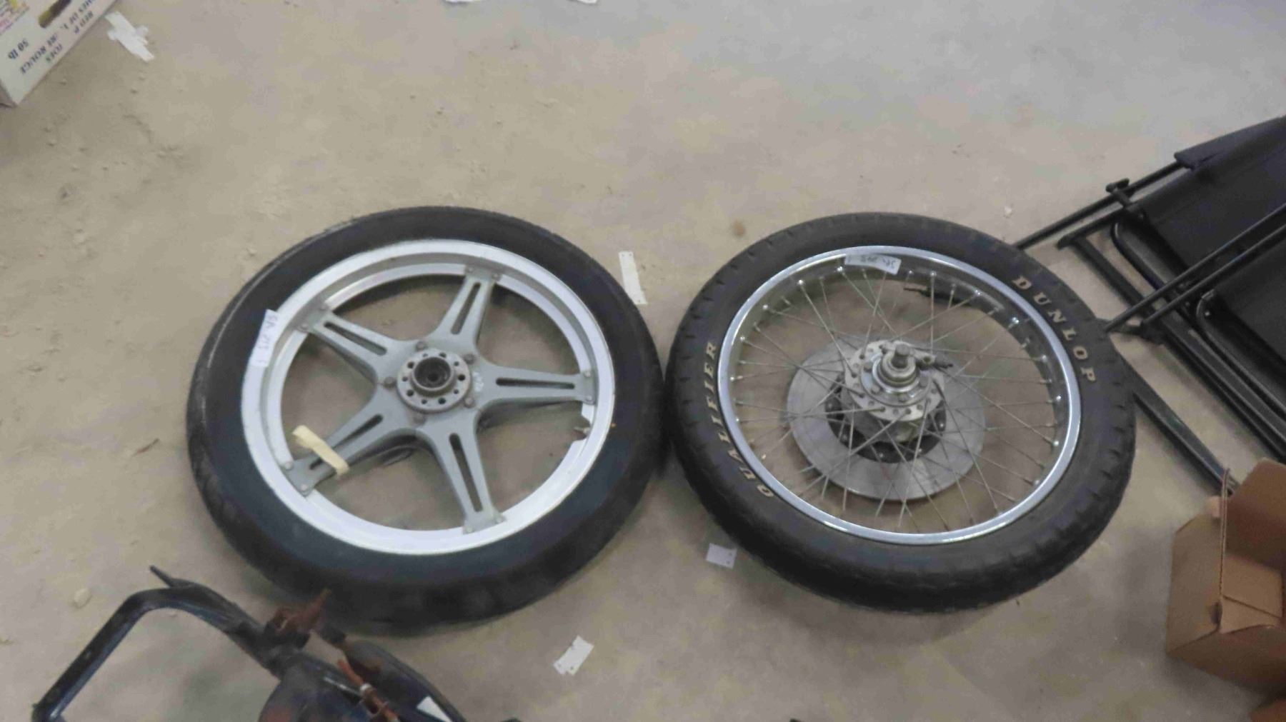 1977 Honda Motorcycle Frame , 2 Motorcycle Tires and Rims : 110/90-19 &