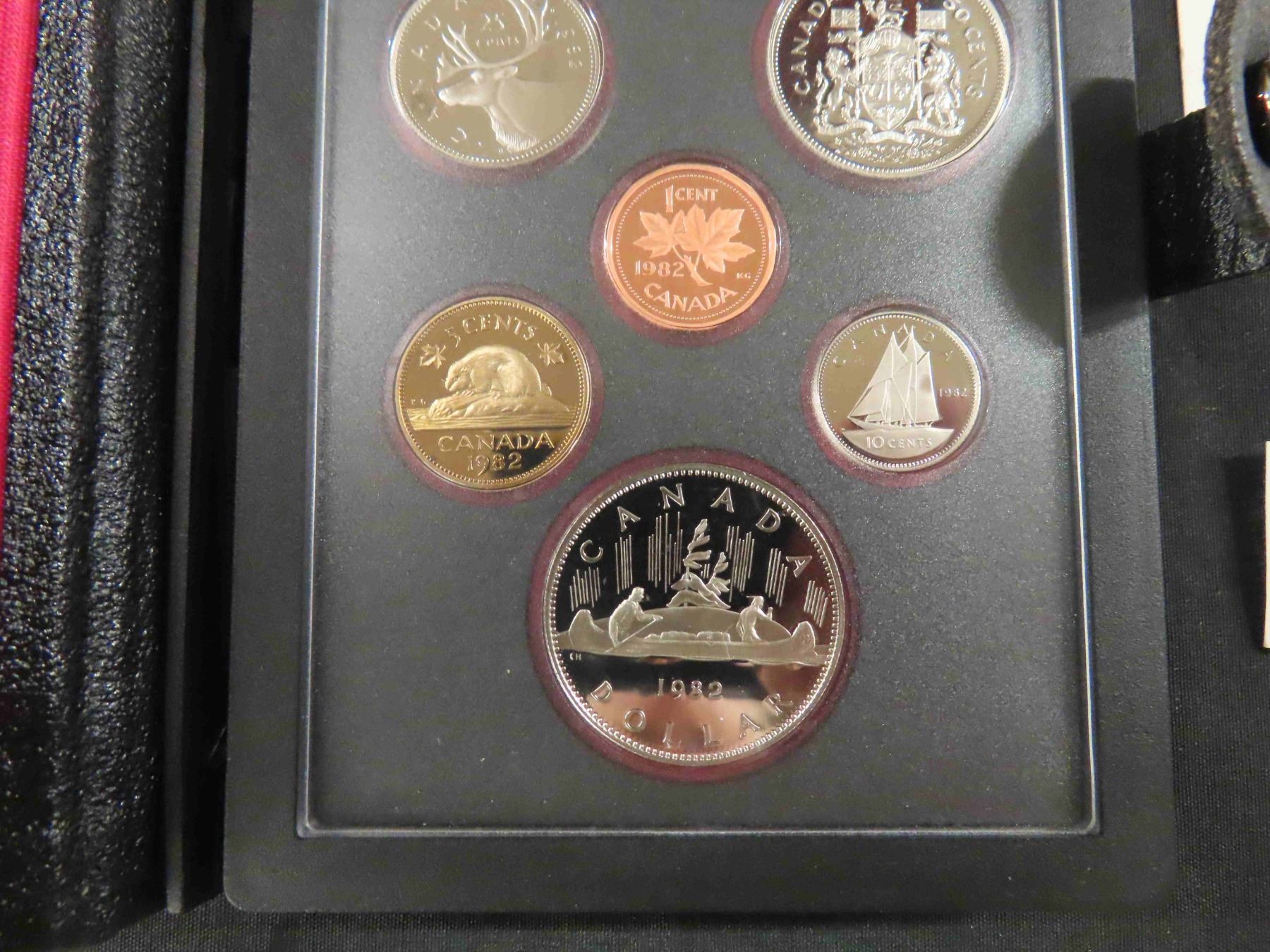 1982 Canada Uncirculated Double Stack Coin Set in Leather Case with Extra Silver Dollar Coin Royal Canadian Mint