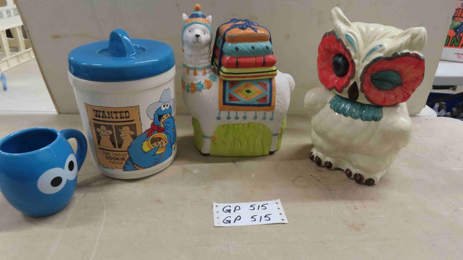 1984 Cookie Monster Cookie Jar + Mug, Shawree Owl Cookie Jar , Llama Cookie Jar