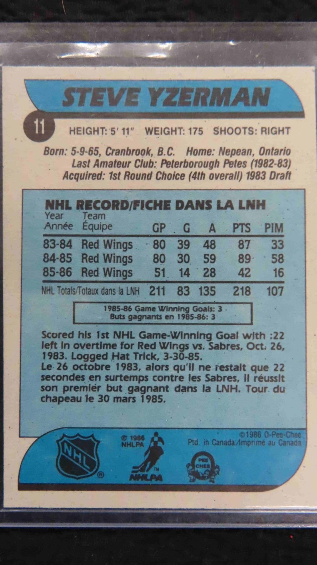 1986/87 Steve Yzerman Detroit Red Wings Card
