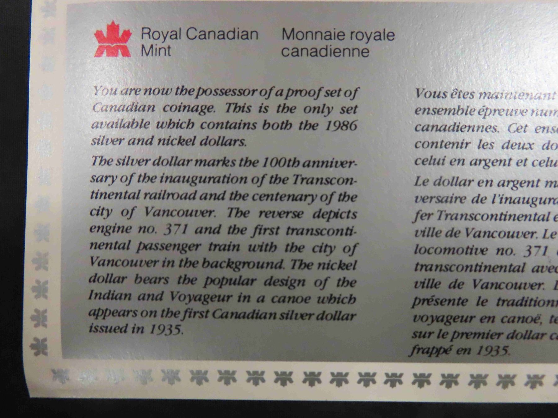 1986 Canadda Uncirculated Proof Coin Set with Silver Dollar Royal Canadian Mint Sealed in Plastic Never Opened ( Pics Shown of Others We Have Listed )
