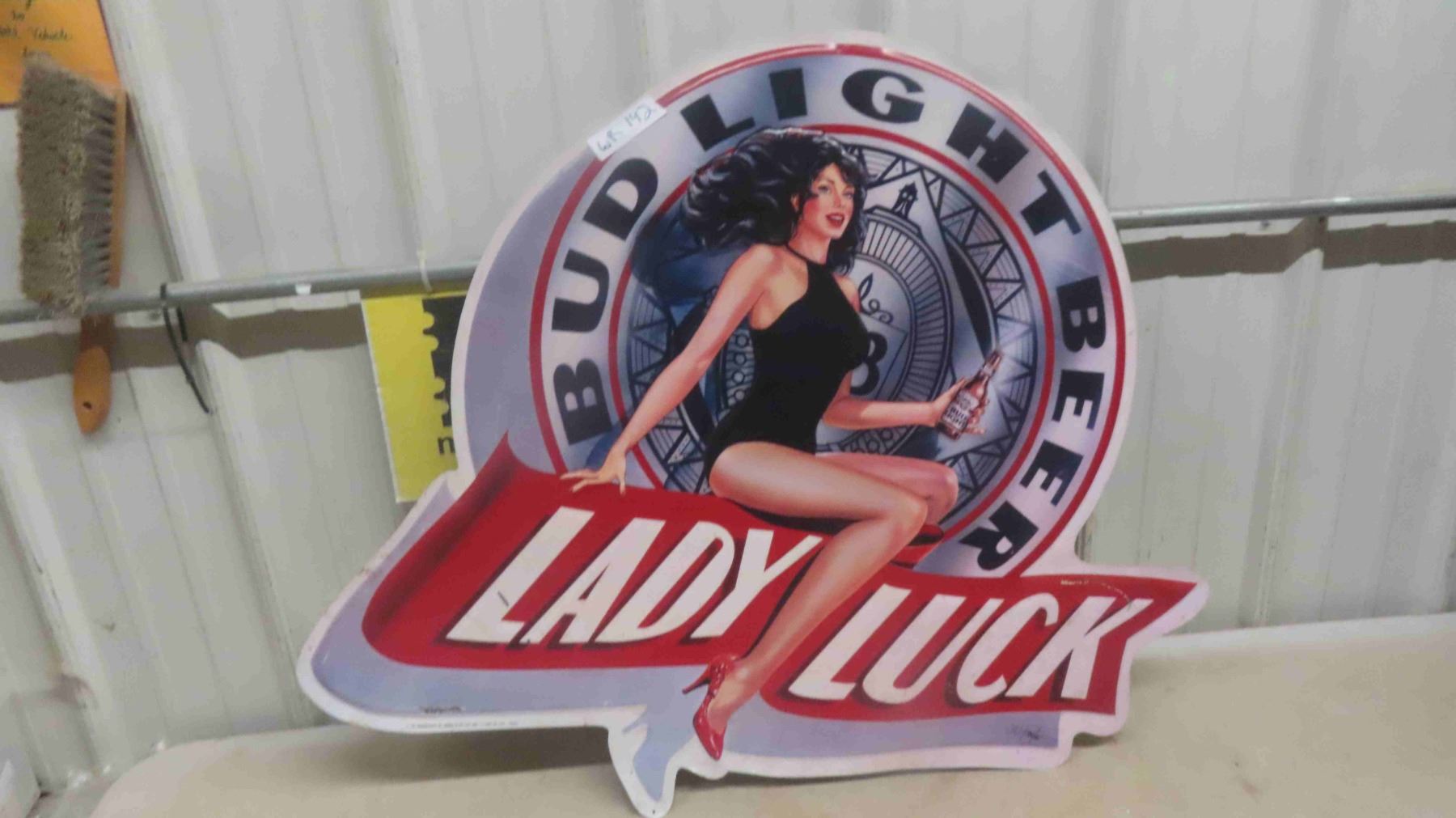 1991 Budlight Metal Beer Sign 'Lady Luck' Approx Up To. 36'' x 36''