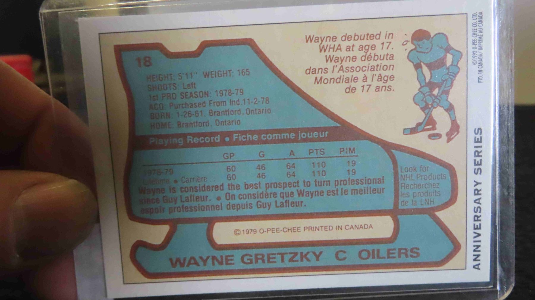 1992 O.P.C. Gretzky Rookie Anniversary Series -Mint