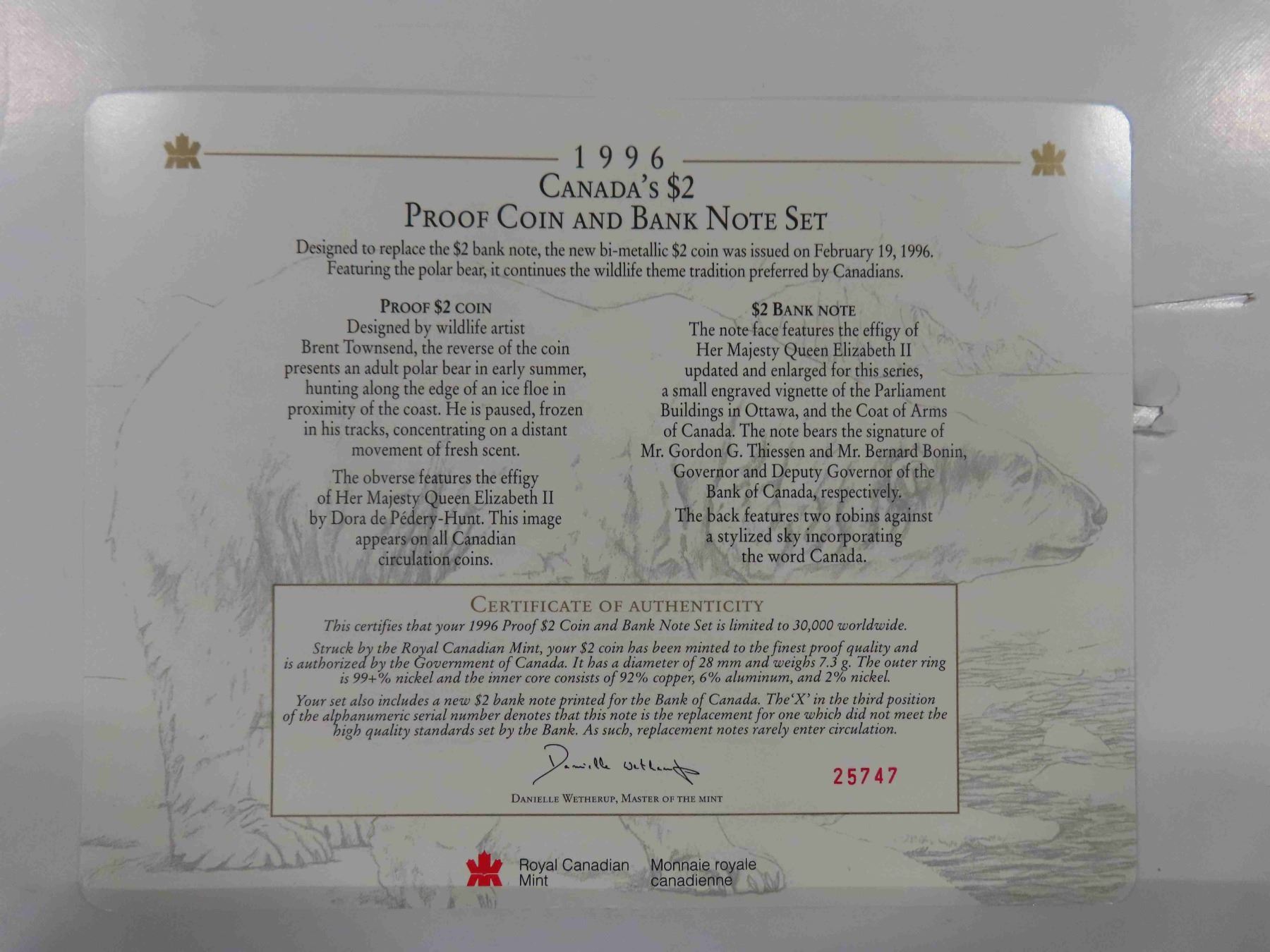 1996 Canada $2.00 Bill and Coin Proof Set Encapsulated Royal Canadian Mint