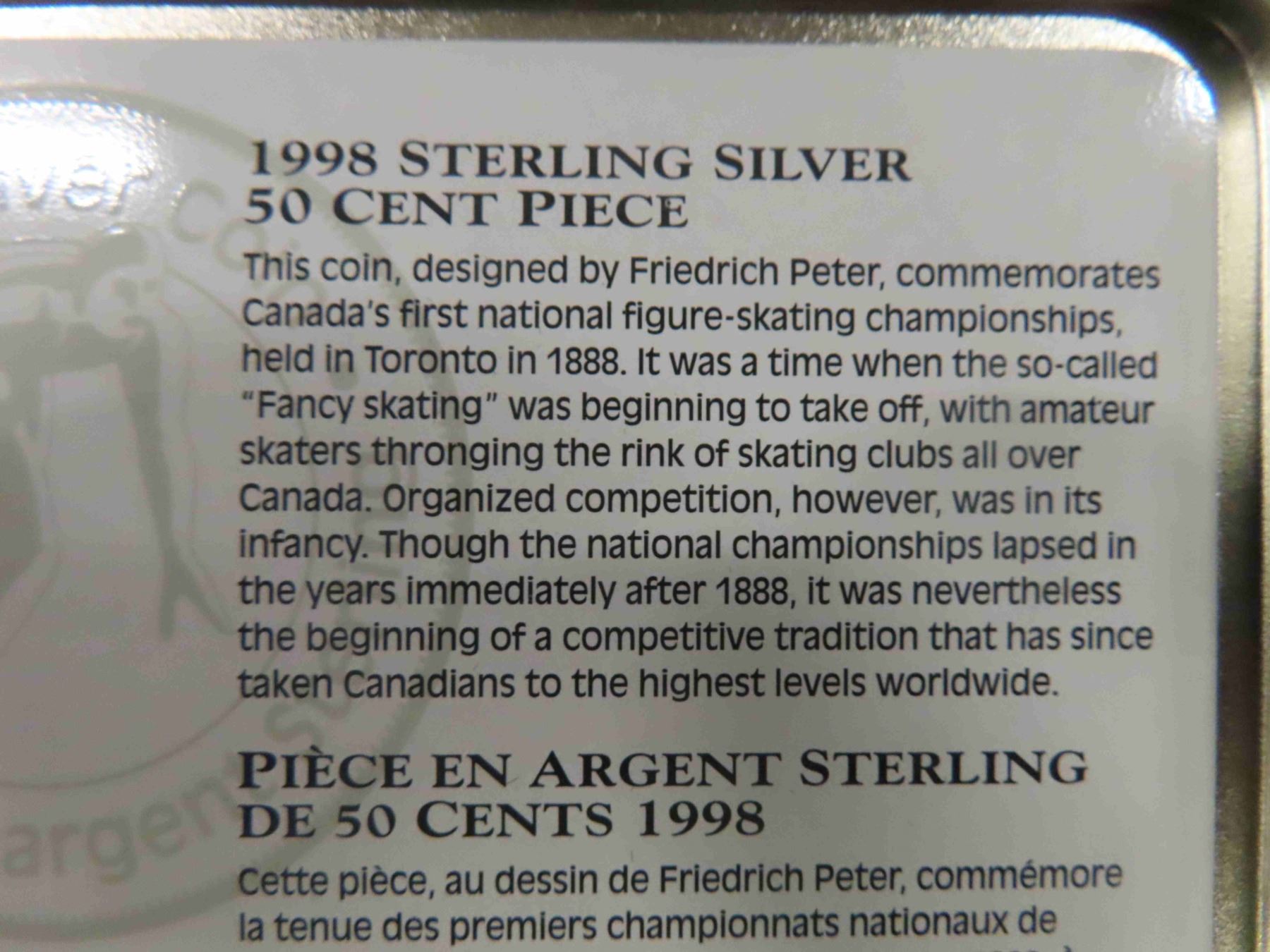 1998 Canada Figure Skating 50 Cent Sterling Silver Encapsulated Coin in Metal Box Royal Canadian Mint