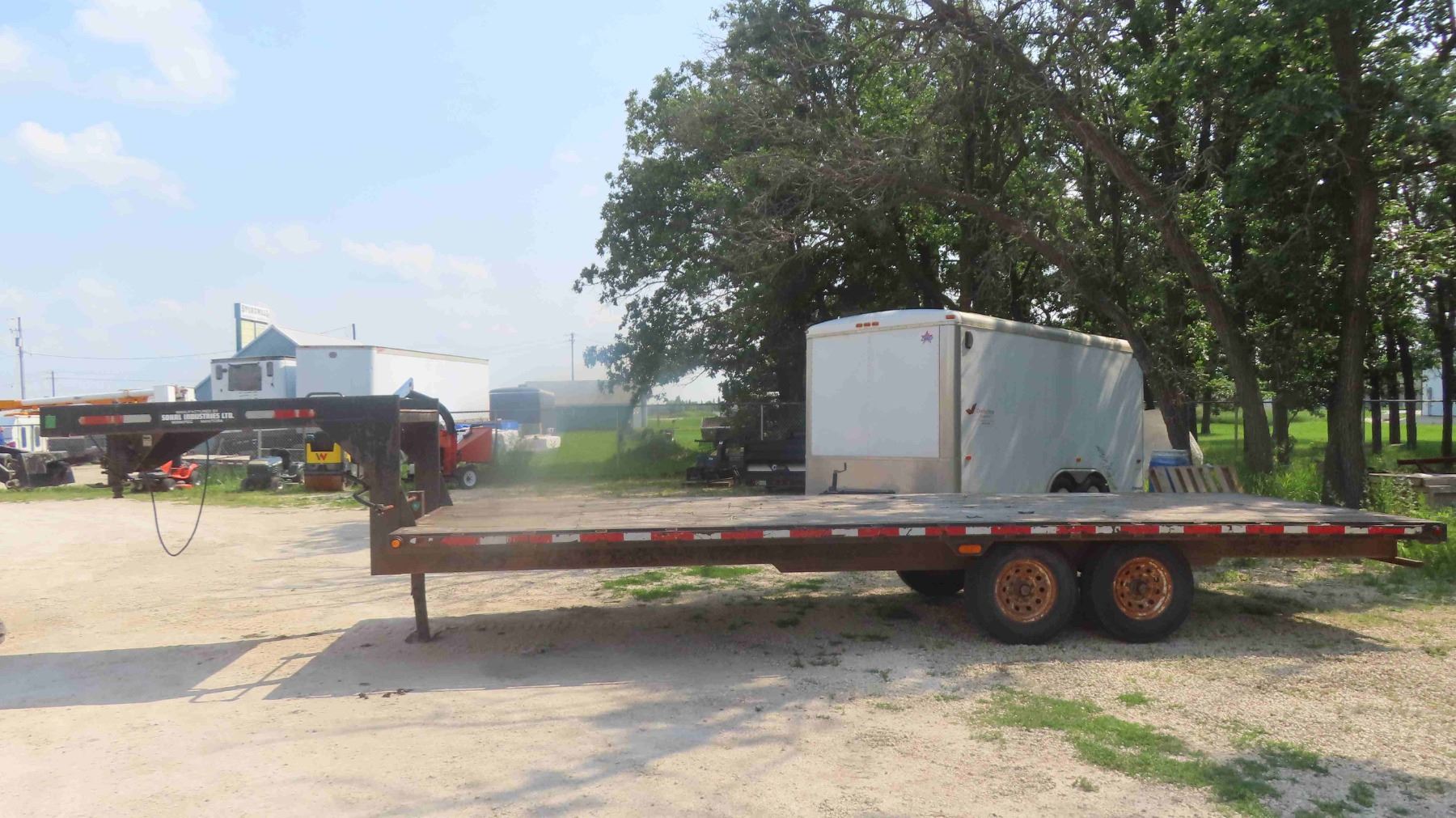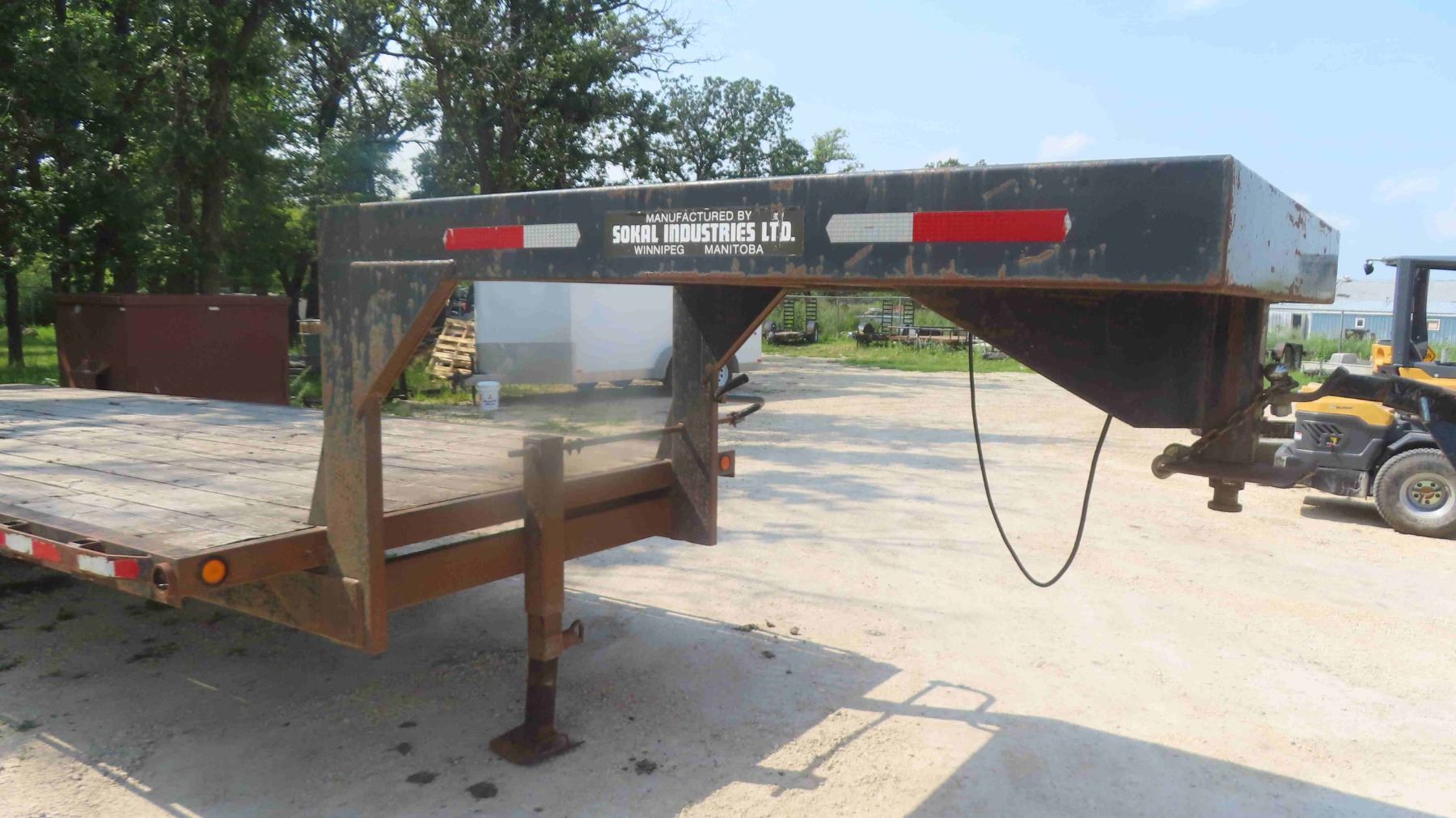 1999 Sokal Tandem Flatdeck Trailer 7000lbs x 2 with Stake Pockets, Tie Strap Rail, New Bearings & Brakes Has TOD