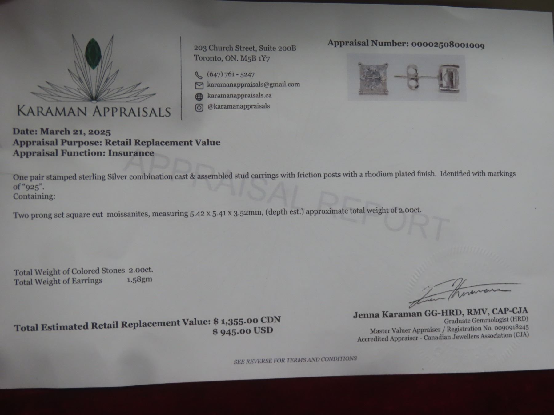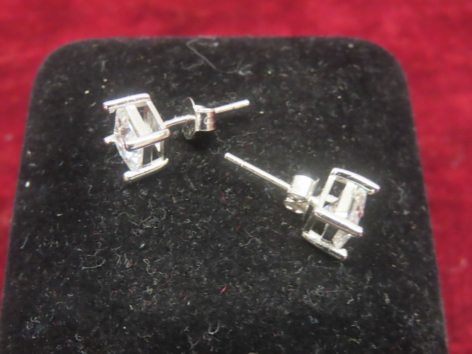 2.00 CT GRA Certified Princess Cut Moissanite Stones VVS D Color Set in Square 4 Claw Basket Earrings Set in 925 Silver Earrings Retail Value $1,355.00