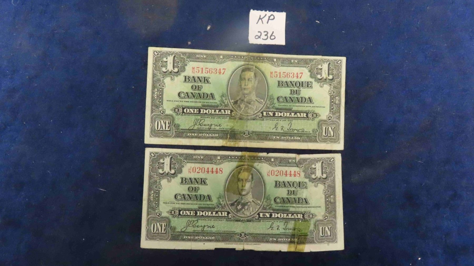 (2) 1937 Canada $1 Bills Torn & Taped G.W.