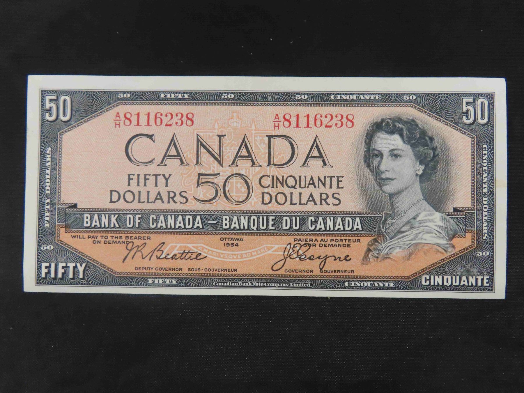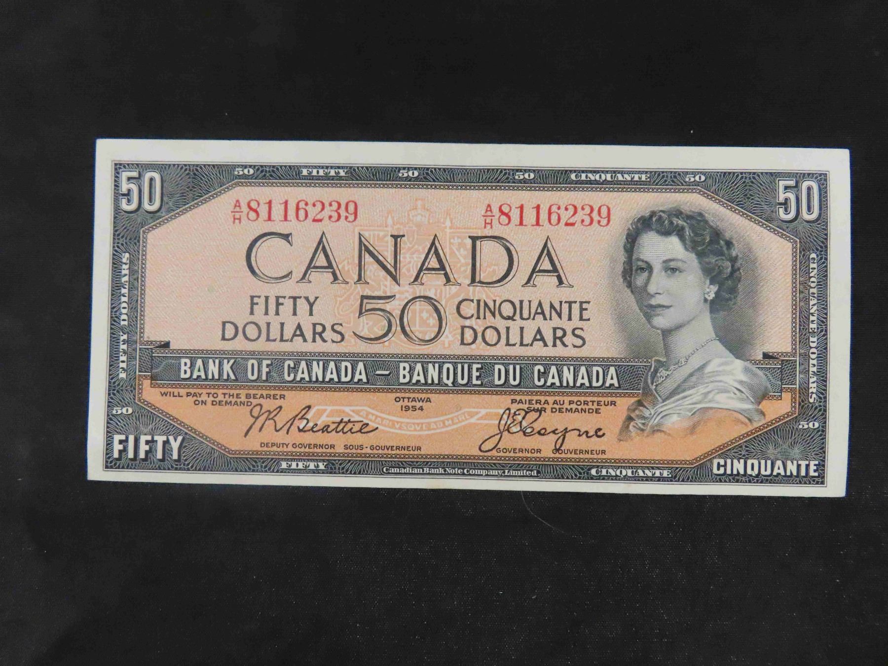 (2) 1954 Canada 50 Dollar Bills (Consecutive Numbers) - Nice and Crisp Paper Money