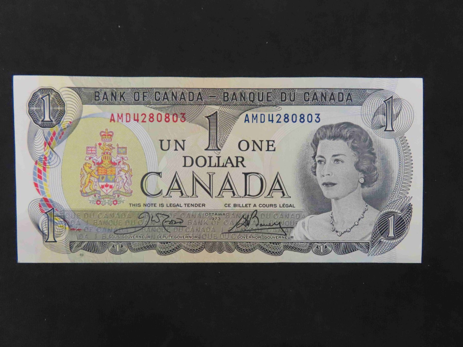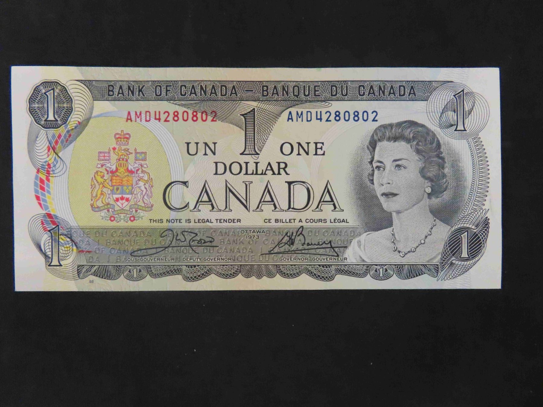 2 1973 Canada $1.00 Paper Bills with Consecutive Serial Numbers - Crispy
