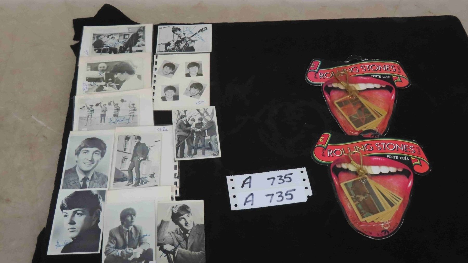 (2) 1983 Rolling Stones Cards on Chain in Original Packaging, 9 Beatle Cards from Gum Packs