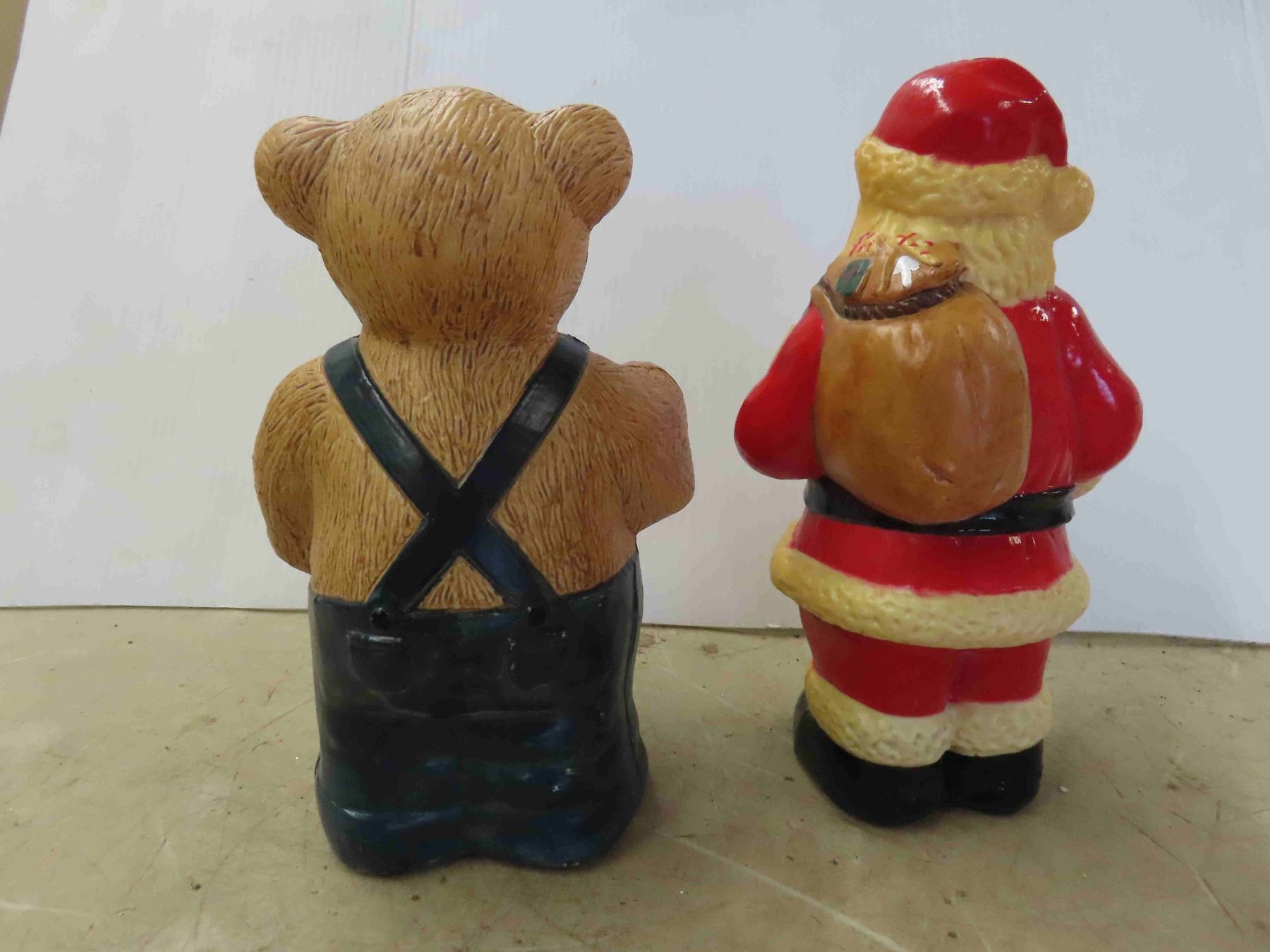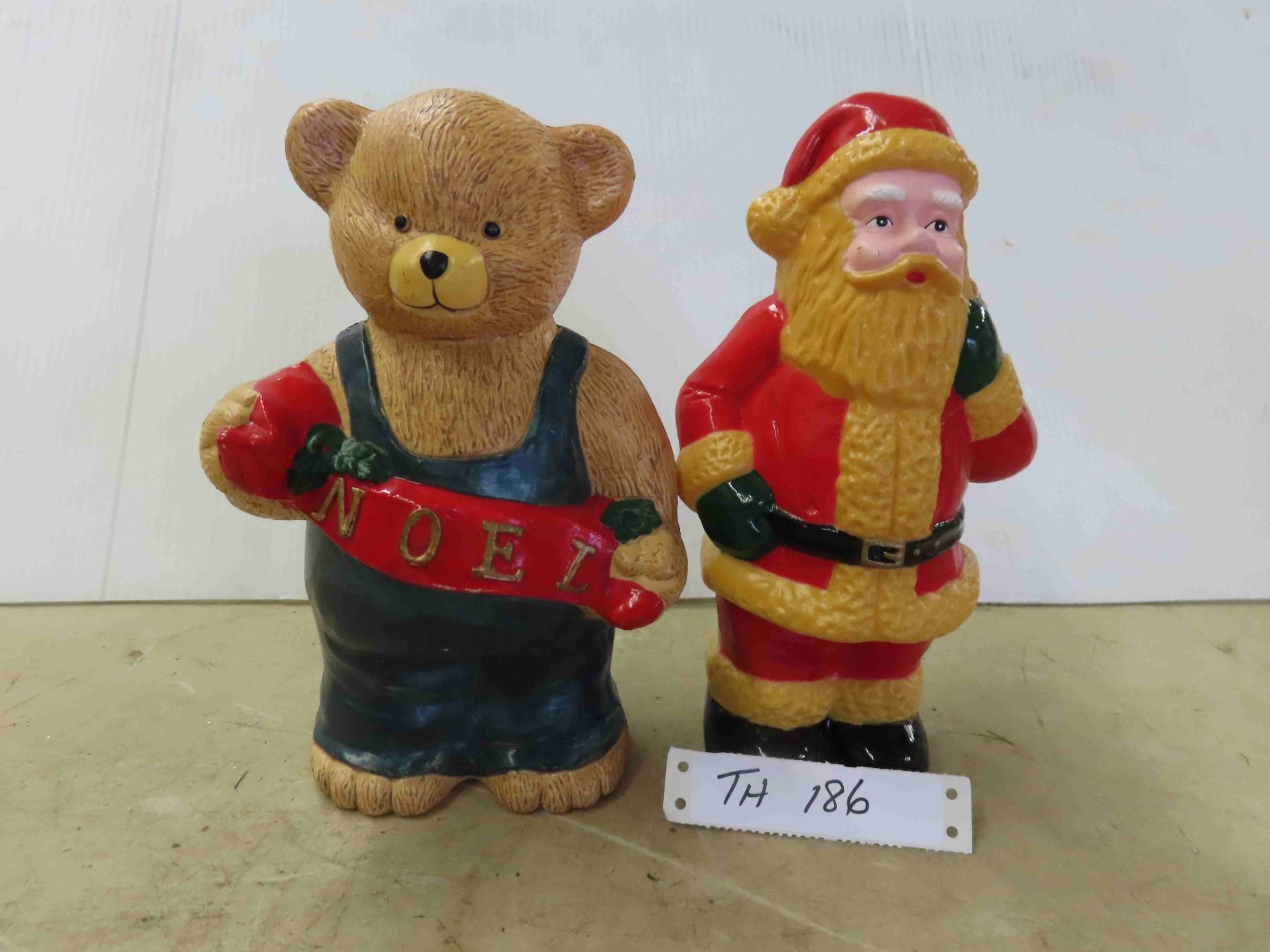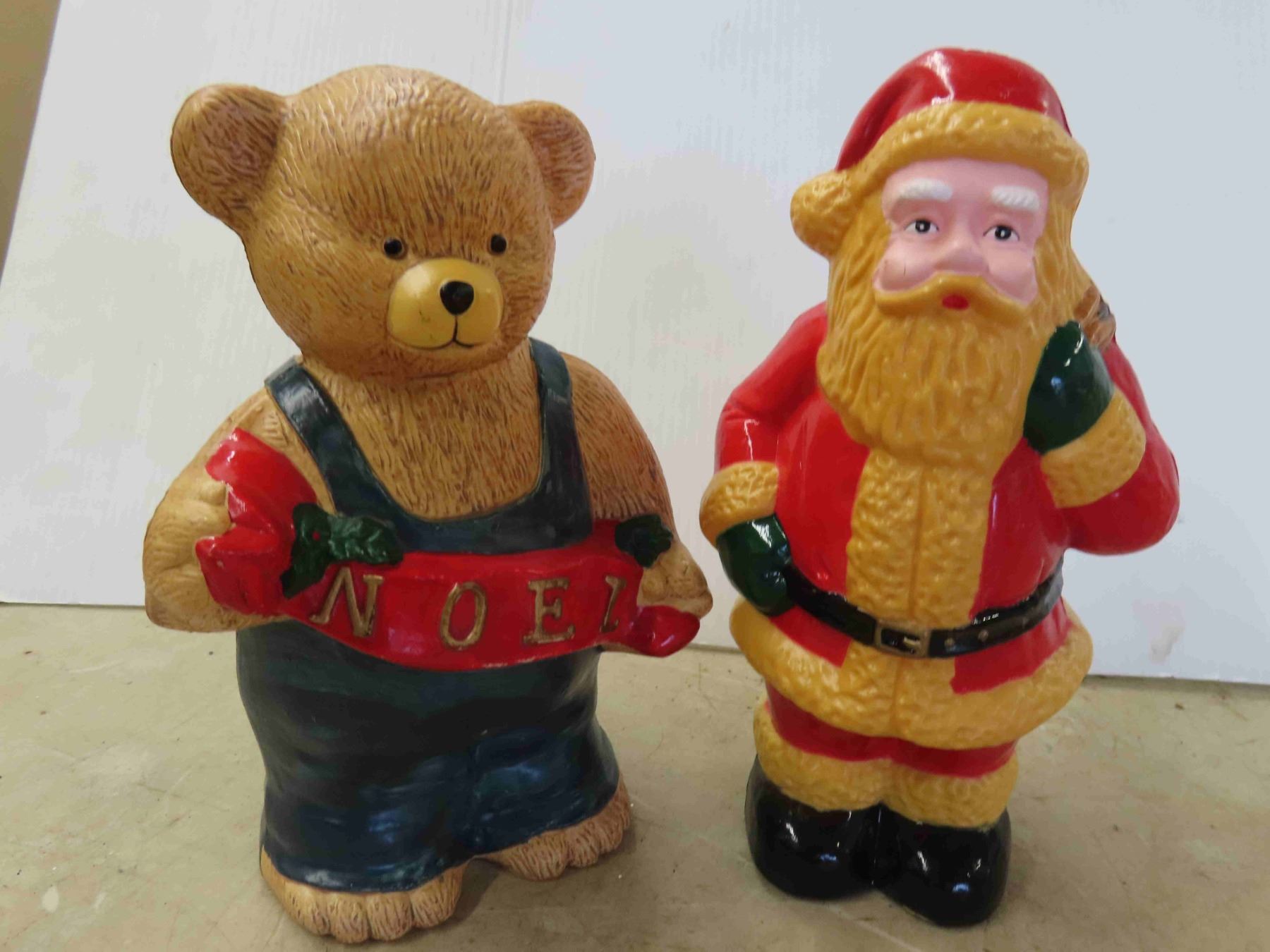 (2) 1997 Plastic Christmas Decorations - Noel Bear and Santa 10'' High
