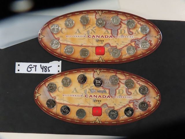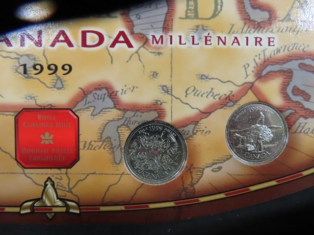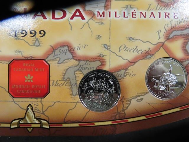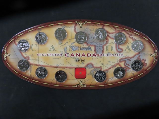 (2) 1999 Canada Millennium 25 cent Collector Sets on Oval Cards - 1 is Nestles - Royal Canadian Mint