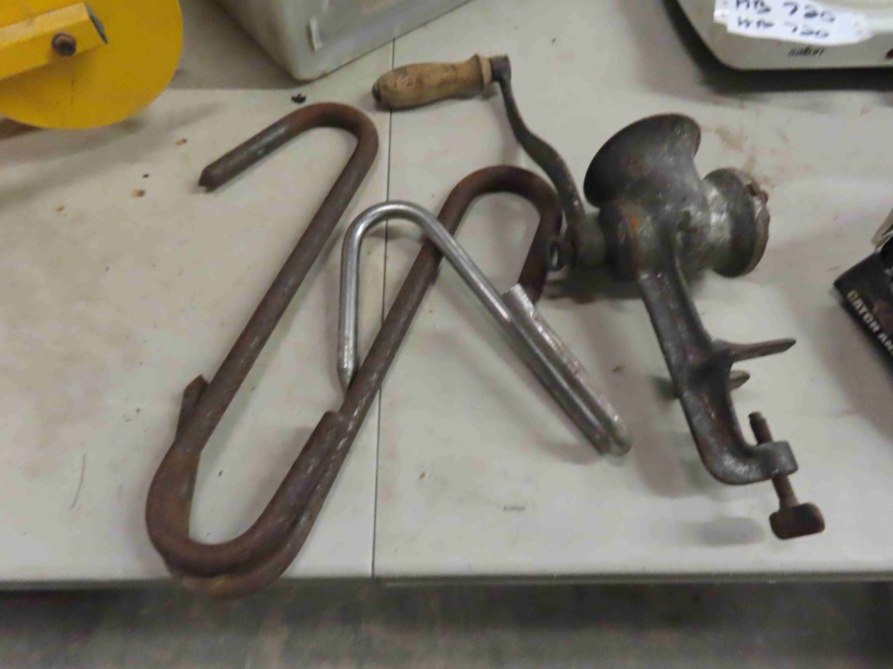 (2) 2 Burner Hot Plate, 3 Meat Hooks, Meat Grinder, 2 New Catch + Release Mouse
