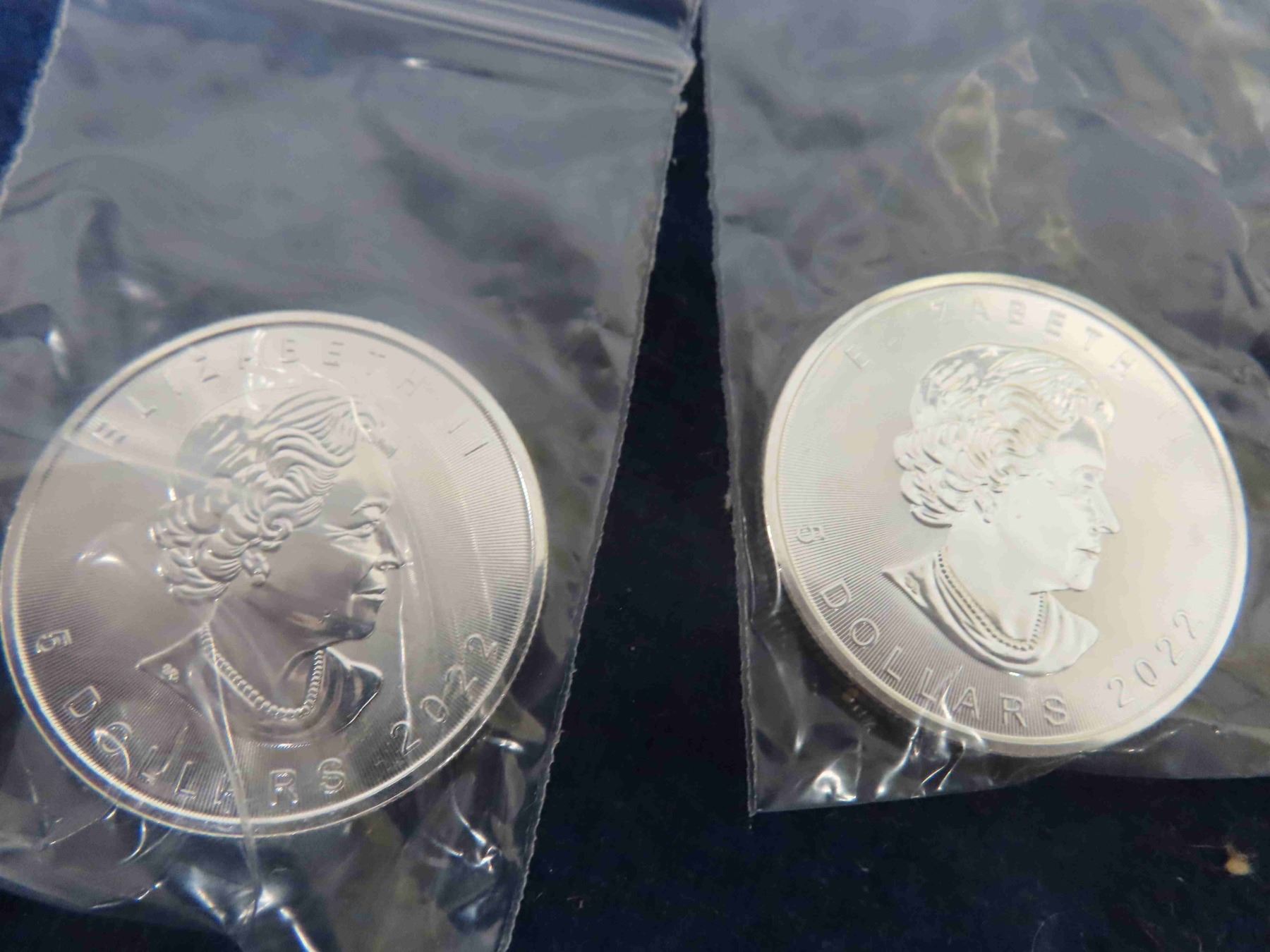 (2) 2022 1 oz Silver Maples BU