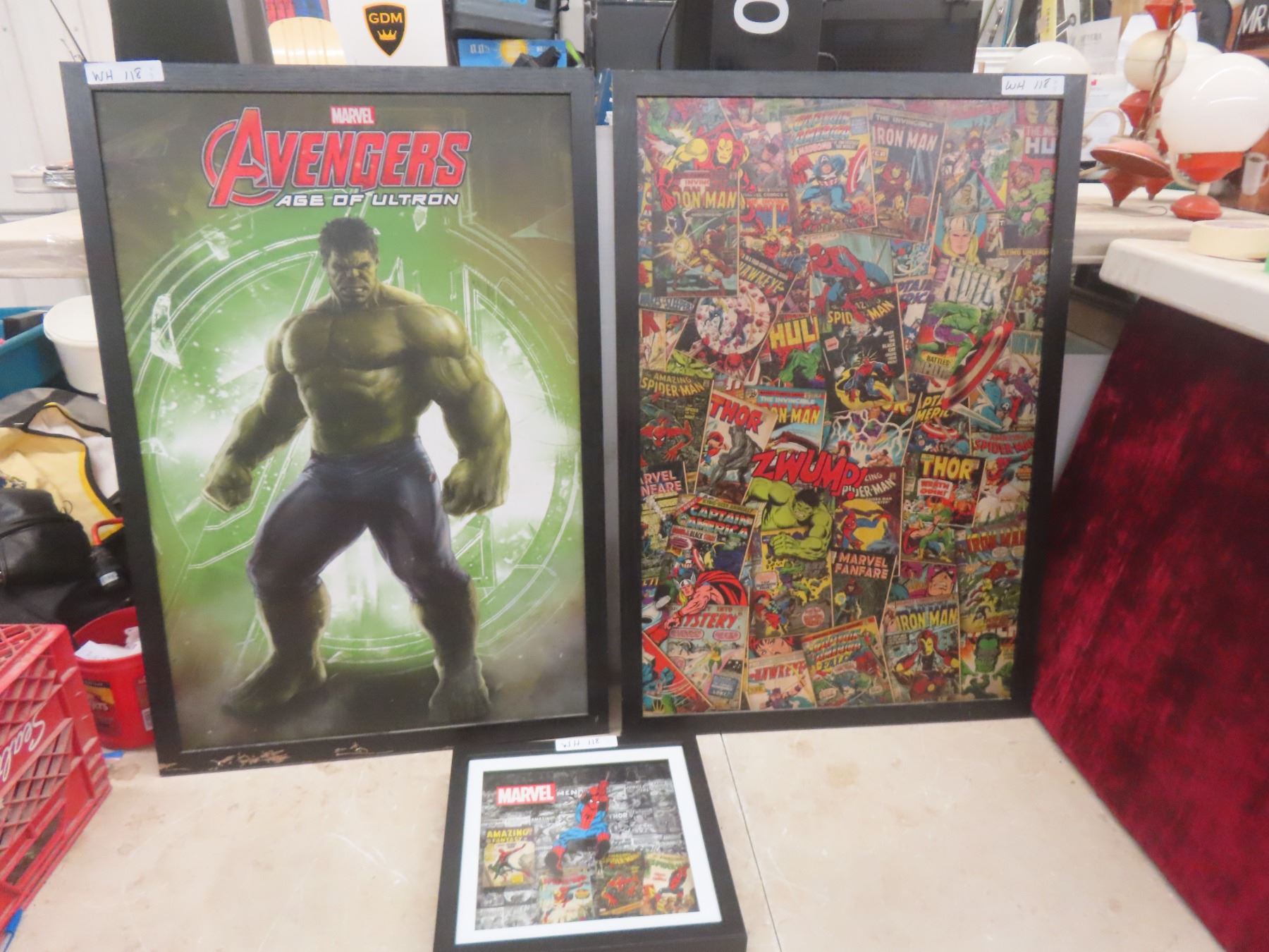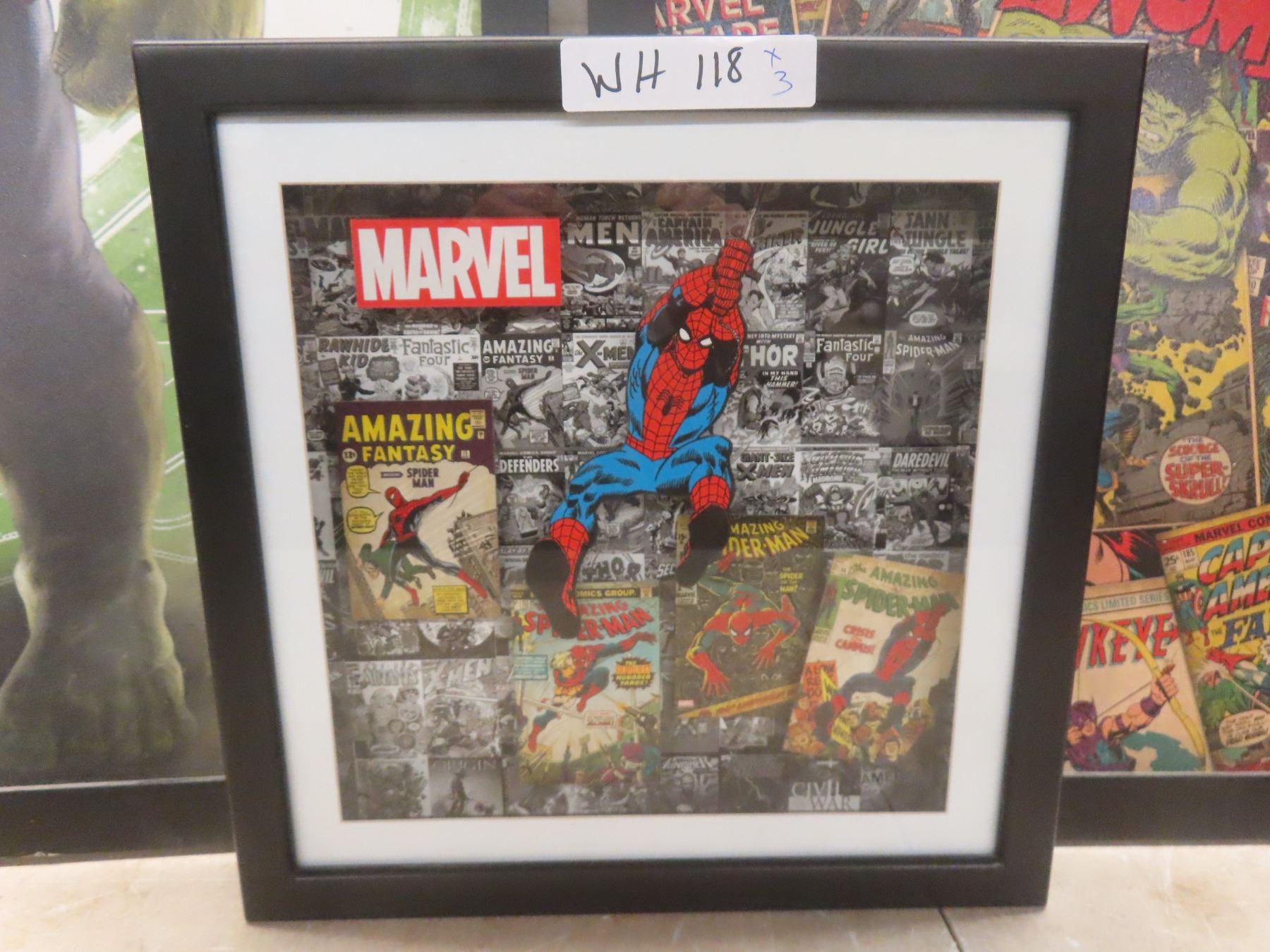 2 26" X 38" Marvel Superhero Displays and 14" X 14" Spiderman Shadowbox