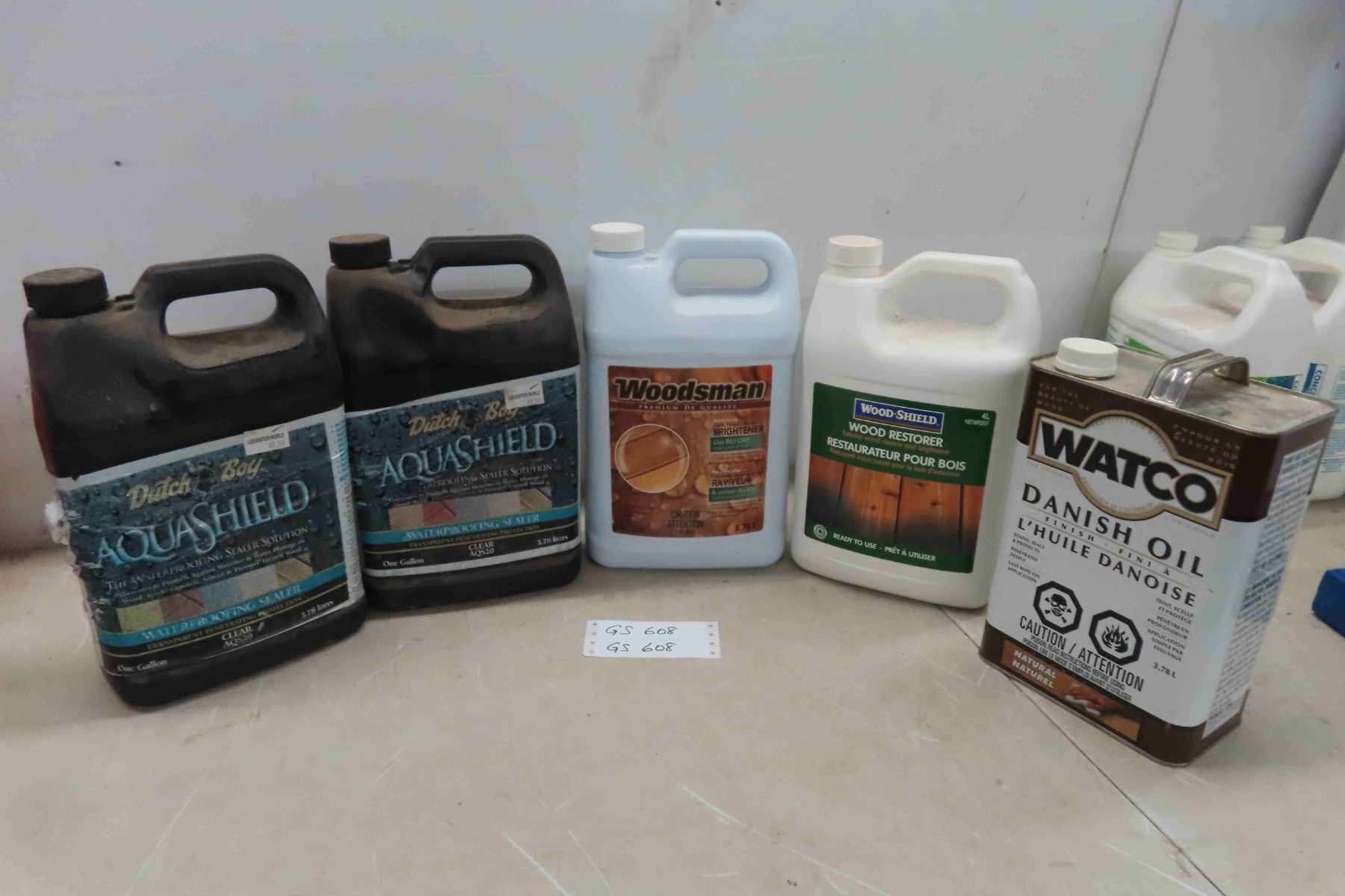 (2) 3.78L Aqua Shield Waterproofing Sealer, Wood Restorer, Woodsman Brightener & 2 L Water Danish Oi