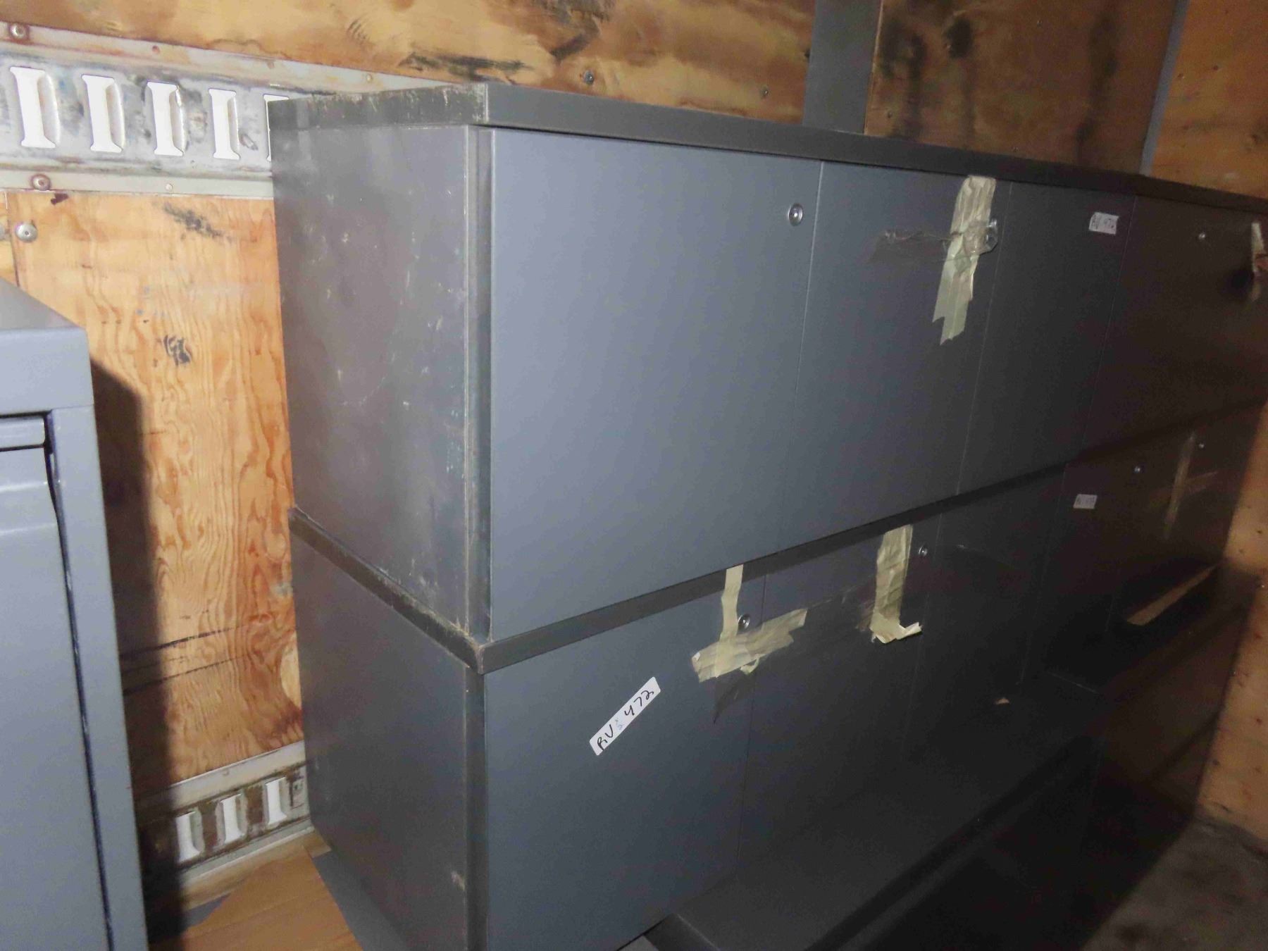(2) 3 Door Upper Cabinets with Locks + Keys 16" x 16" x 42"
