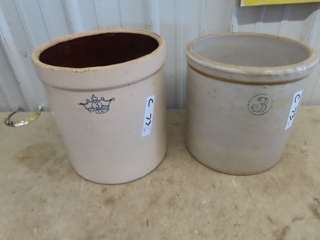 2 - 3 Gal Crocks 1) Crown & 1) ????