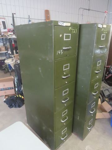 (2) 5 Drawer Metal Filing Cabinets 63" x 15" x 28"