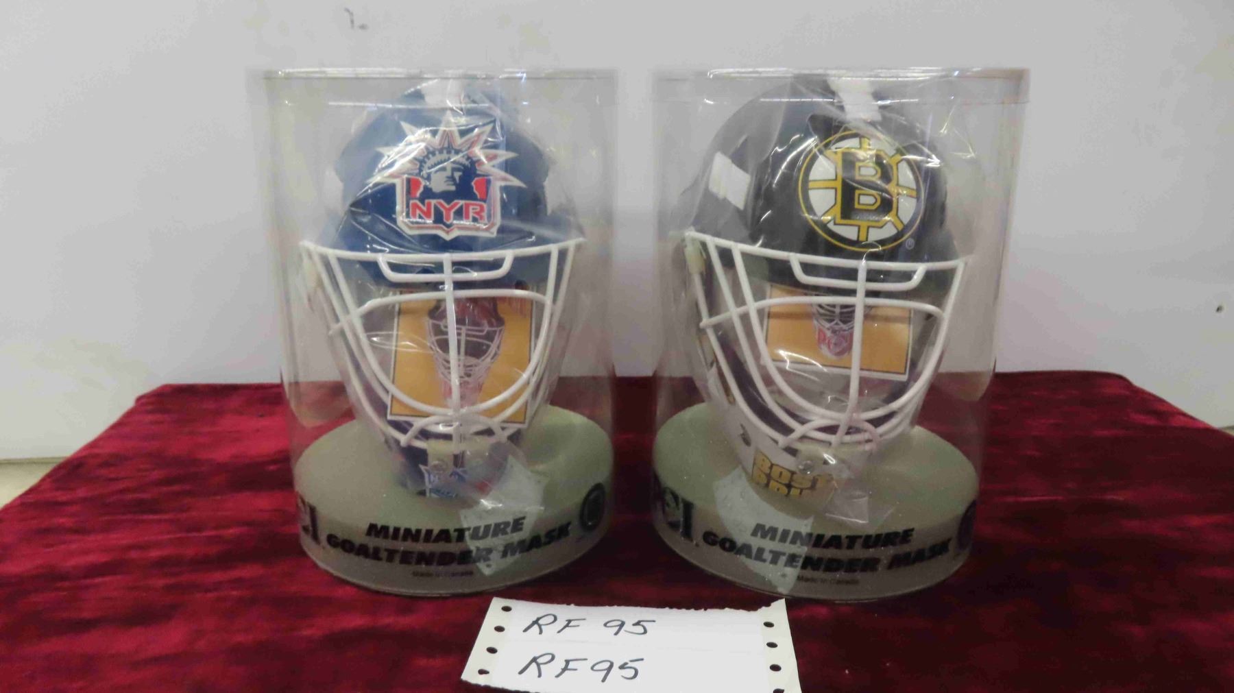 (2) 7" Goalie Masks ; New York Rangers, Boston Bruins - in Original Packages