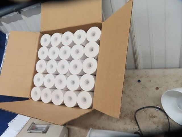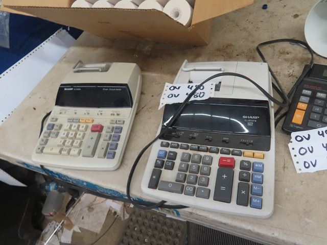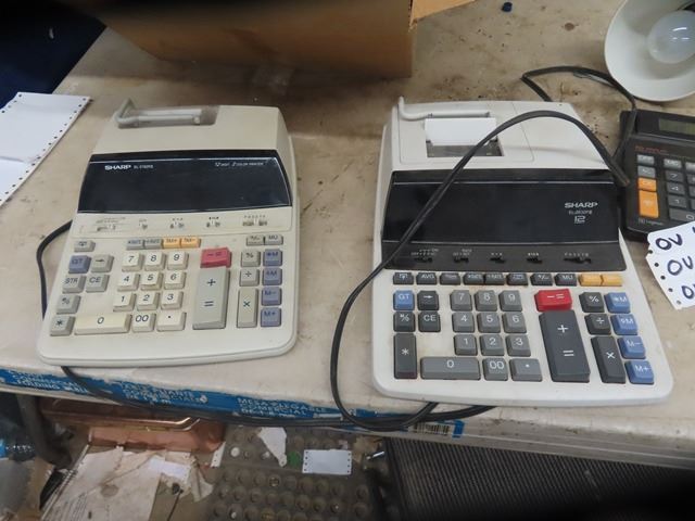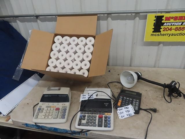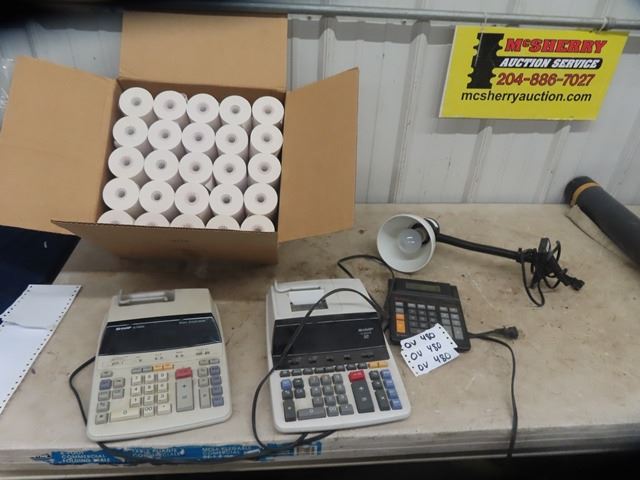 2 Adding Machines & Box of Calculator Paper Light w/ Clamp