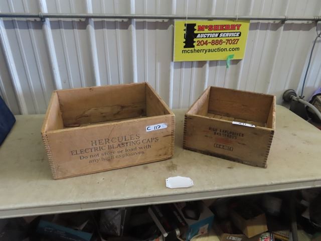 2 Ammo Wood Crates 1) Hercules Blasting Caps, & Du Pont Explosives