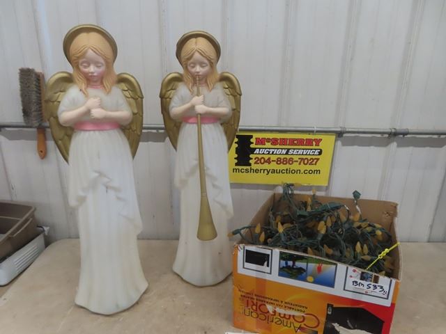 2 Angel Blow Molds 34" Tall & Box of Christmas Lights