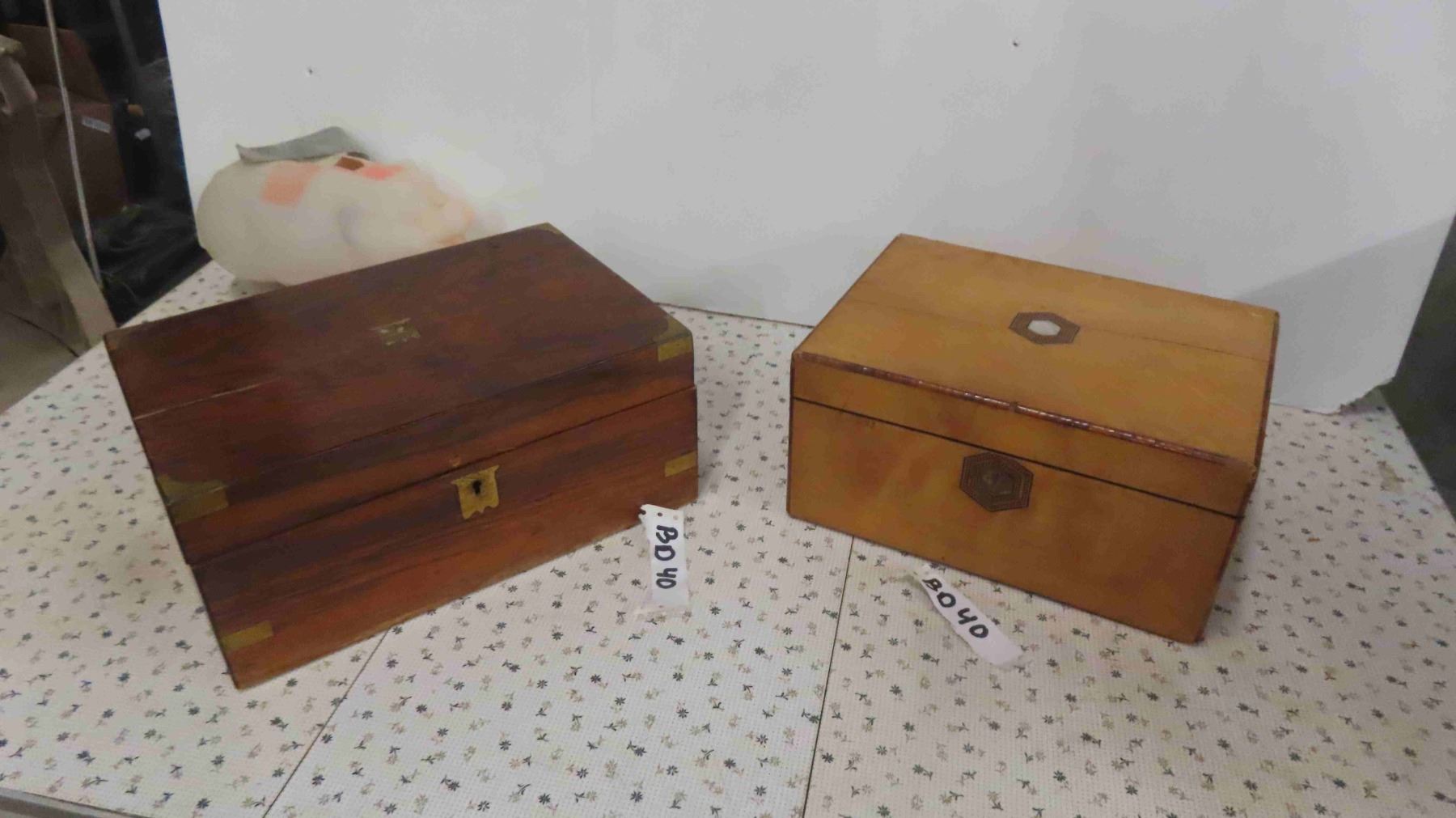 2 Antique 1800s Writing Lap Desk, Wood Document Boxes 12'' x 9'' x 6'' & 13 1/2'' x 9'' x 6''