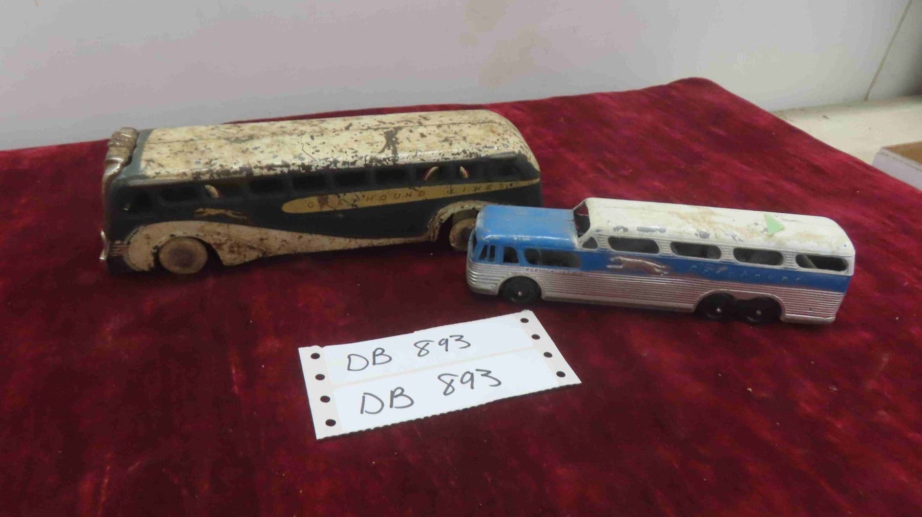 2 Antique Diecast Greyhound Bus - Largest is 19'' x 2'' x 2 1/2''